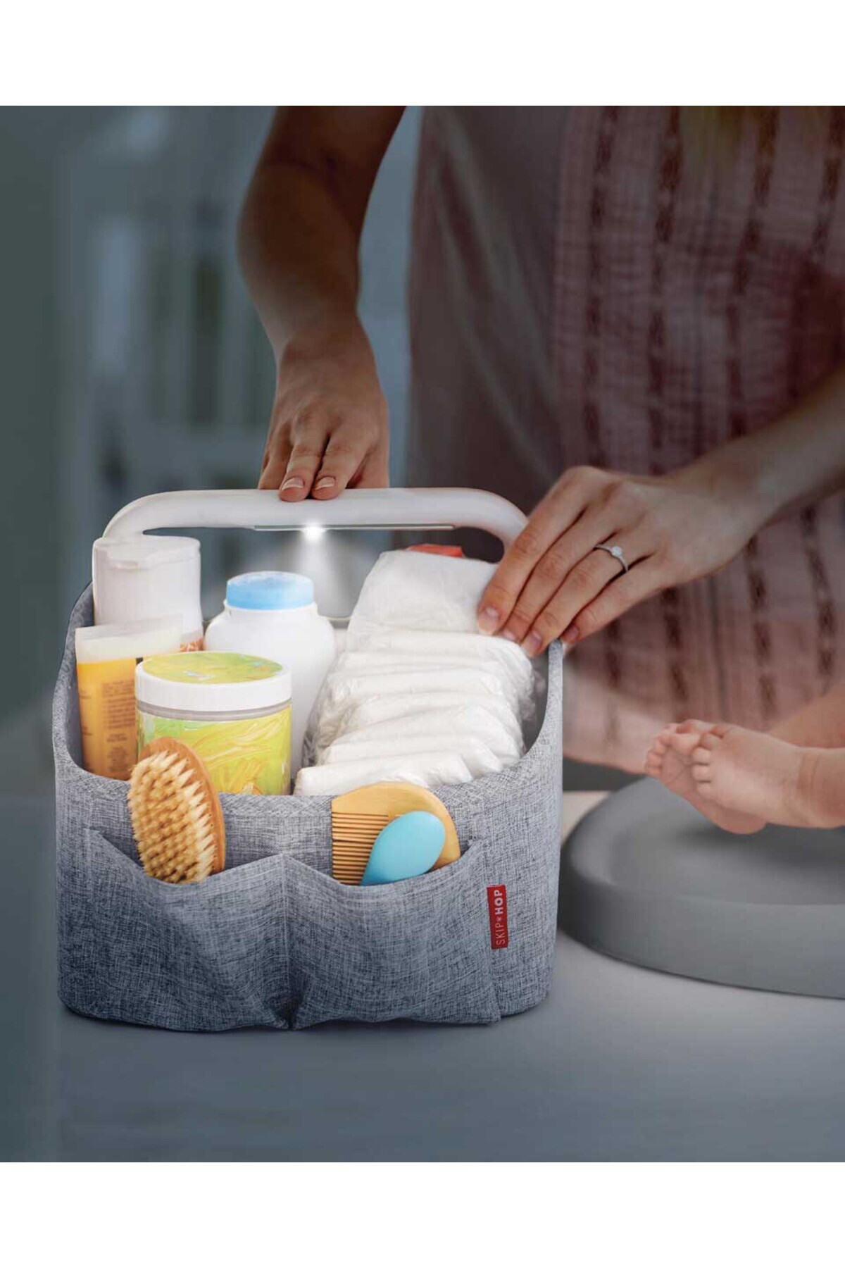Işıklı bebek bezi düzenleyici sepet, gece karanlığına denk gelen bebek bezi değiştirme işlemlerine ışık tutuyor! Dokunmaya duyarlı bir ışık ve 10 dakikalık otomatik kapanma özelliğine sahip tutma sapı, hafif bir şekilde parlayarak annelerin işini kolaylaştırıyor. Modüler bir ayırıcı ve dört adet işlevsel cep