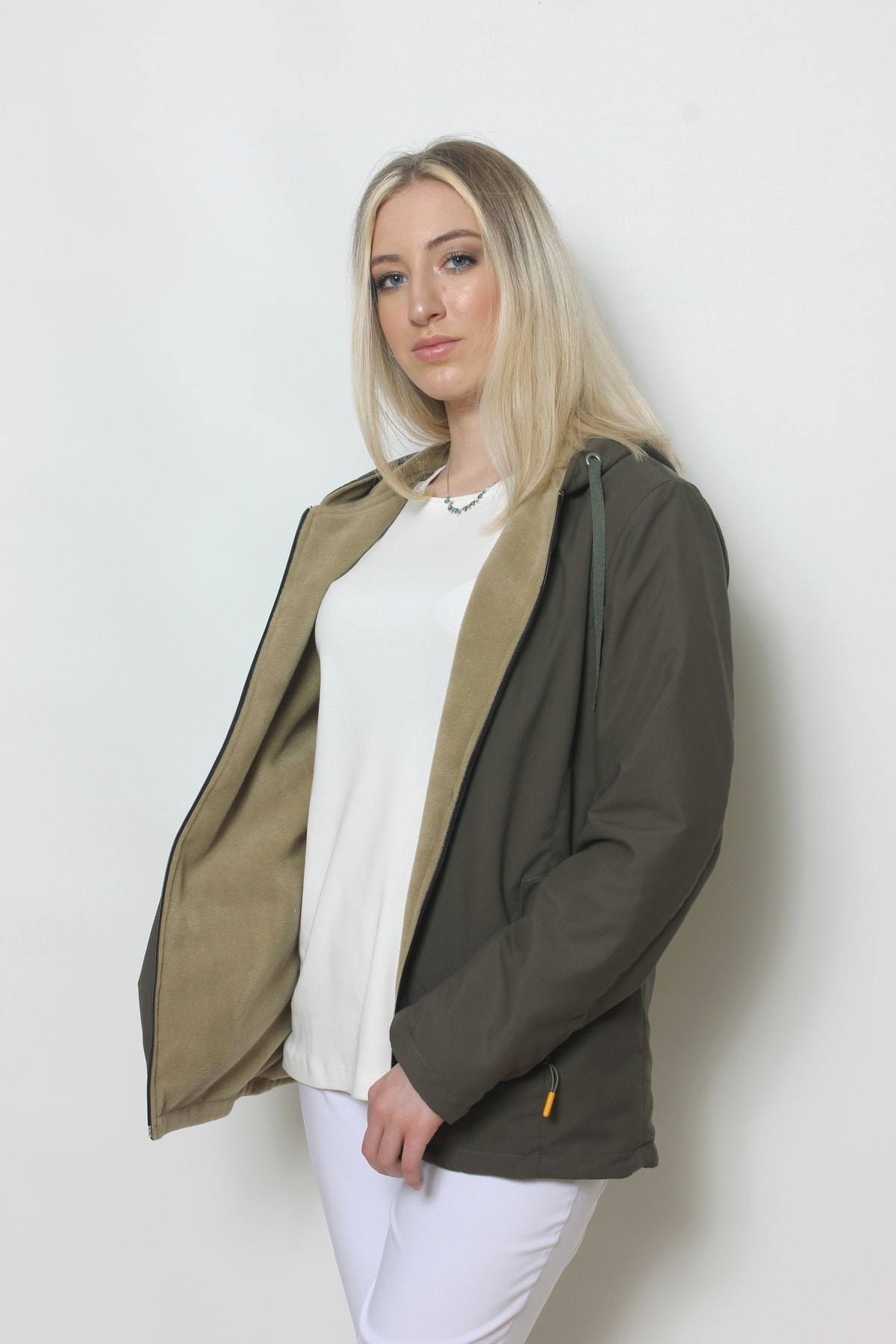 Kapüşonu çıkarılabilir değildir.Fermuarlı cepleri mevcuttur.