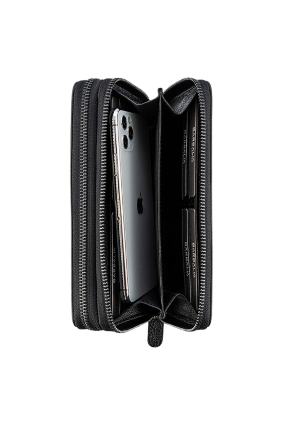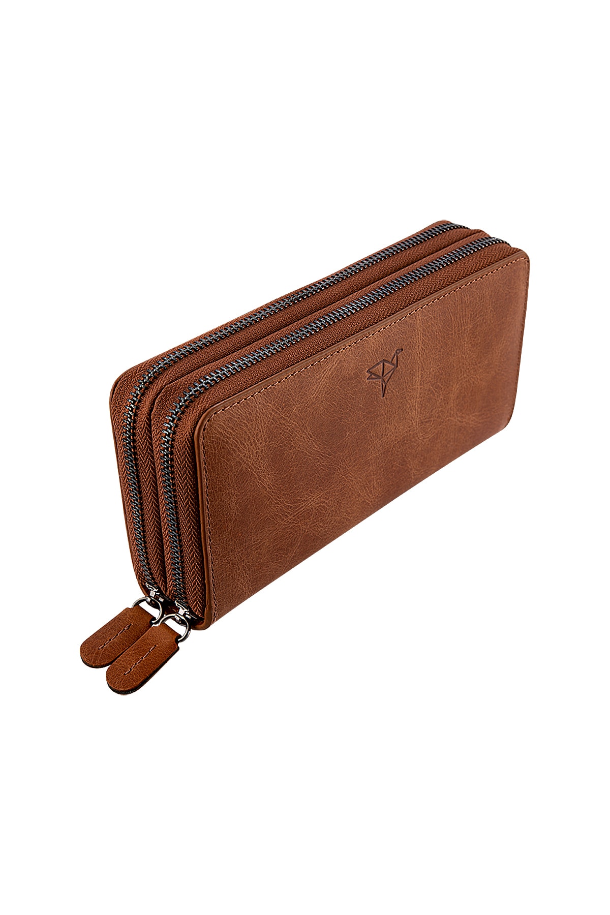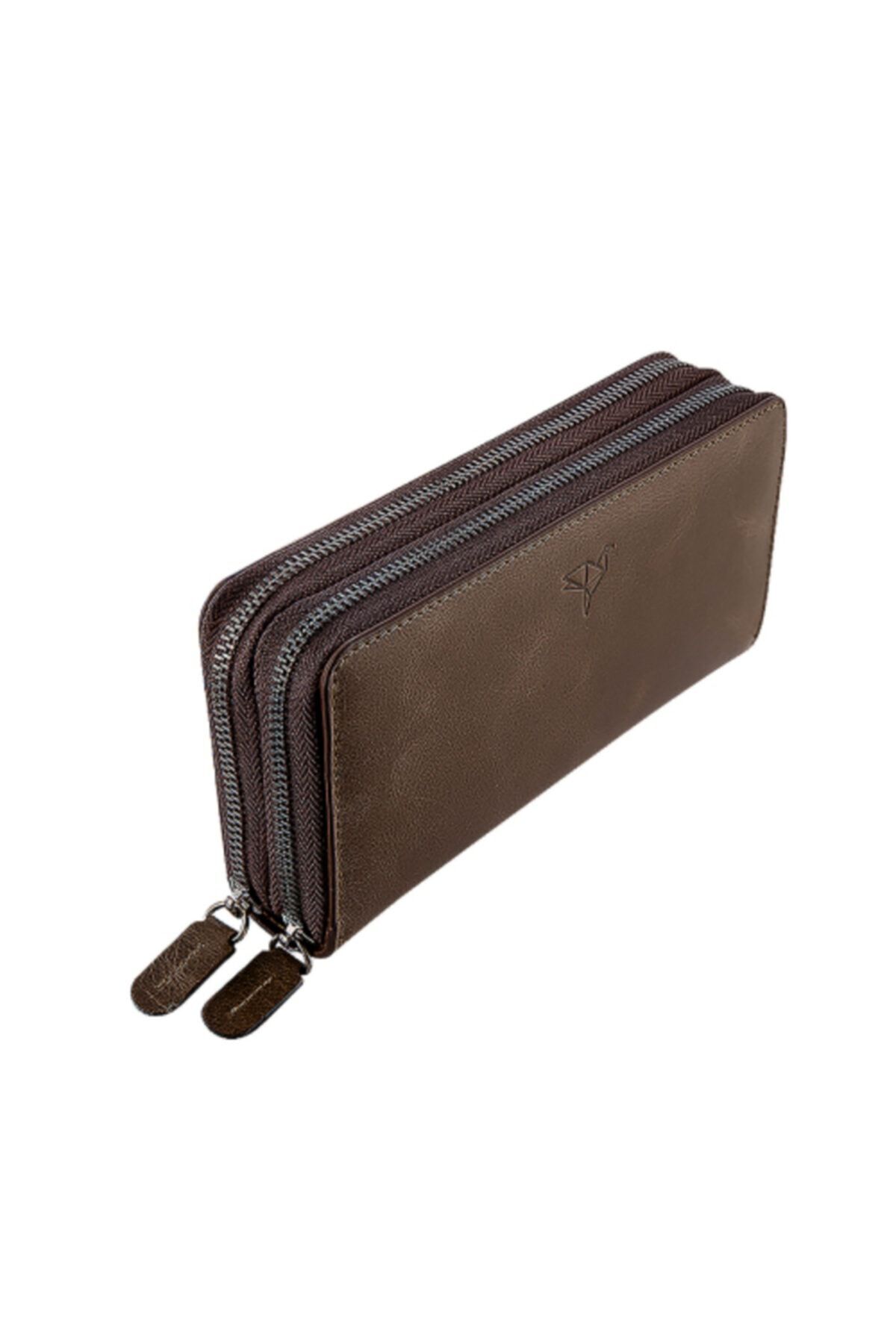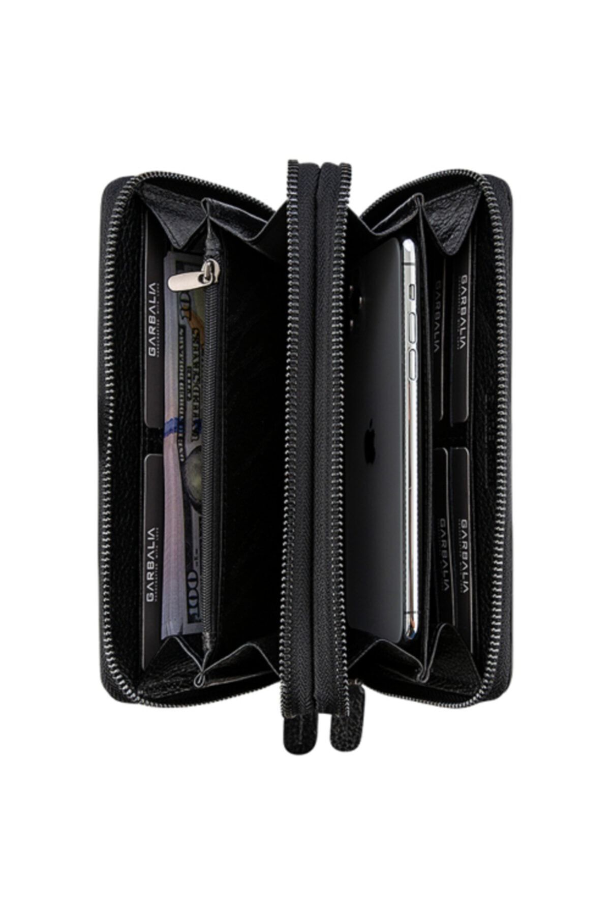 16 adet kart bölmesi ve 4 adet kapalı evrak bölmesi, 1 adet fermuarlı bozuk para bölmesi, 2 adet fermuar kilitli geniş iç haznesi mevcuttur