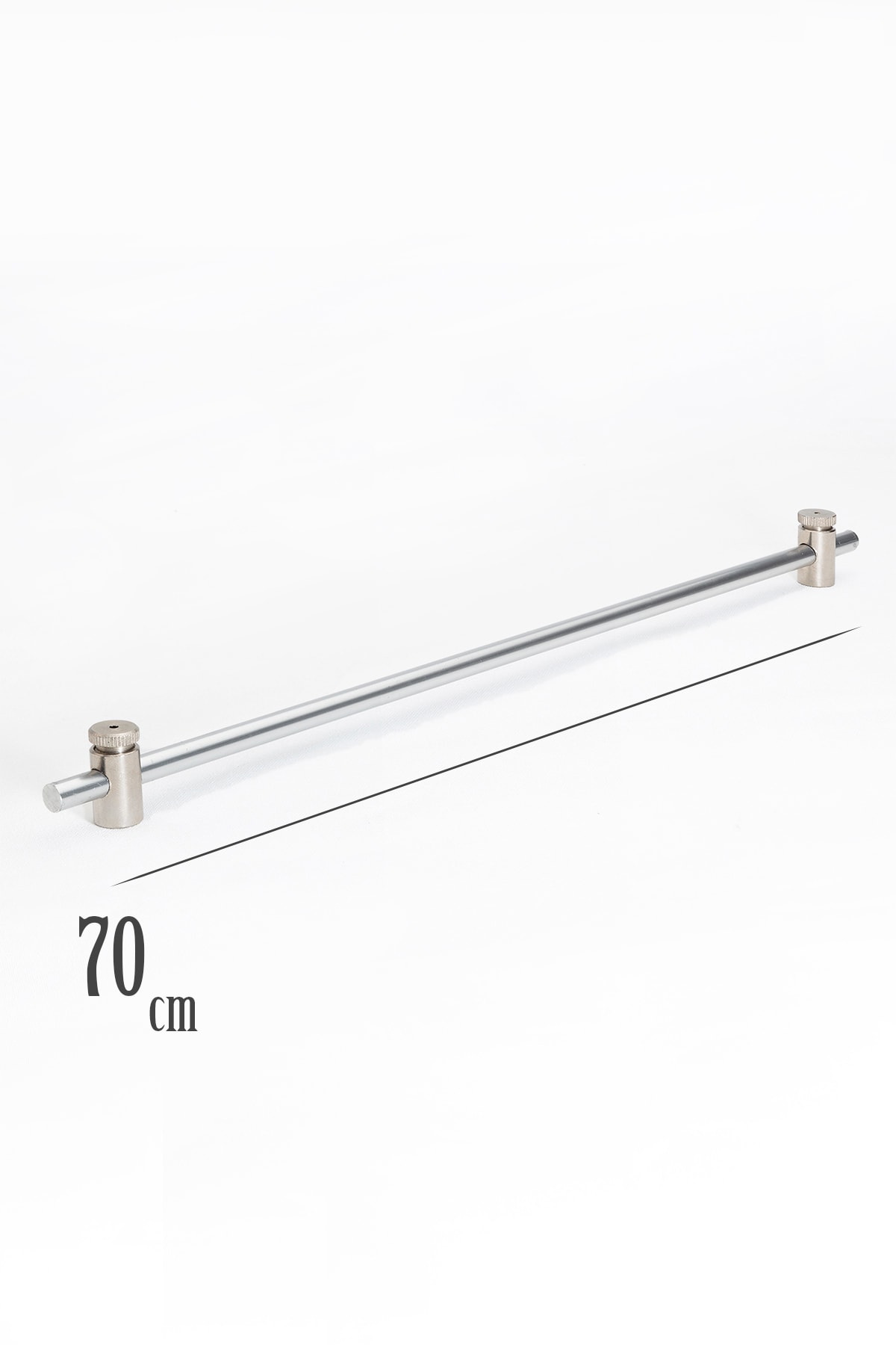 70 cm Metalik Gri (Gümüş) Rustik Çubuğu Özellikleri 1 Adet 70 cm uzunluğunda ve 8 mm çapında içi dolu perde çubuğu, 2 adet 1,5 cm çapında 2,5 cm yüksekliğinde metal başlık ve 2 adet vida gönderilecektir.