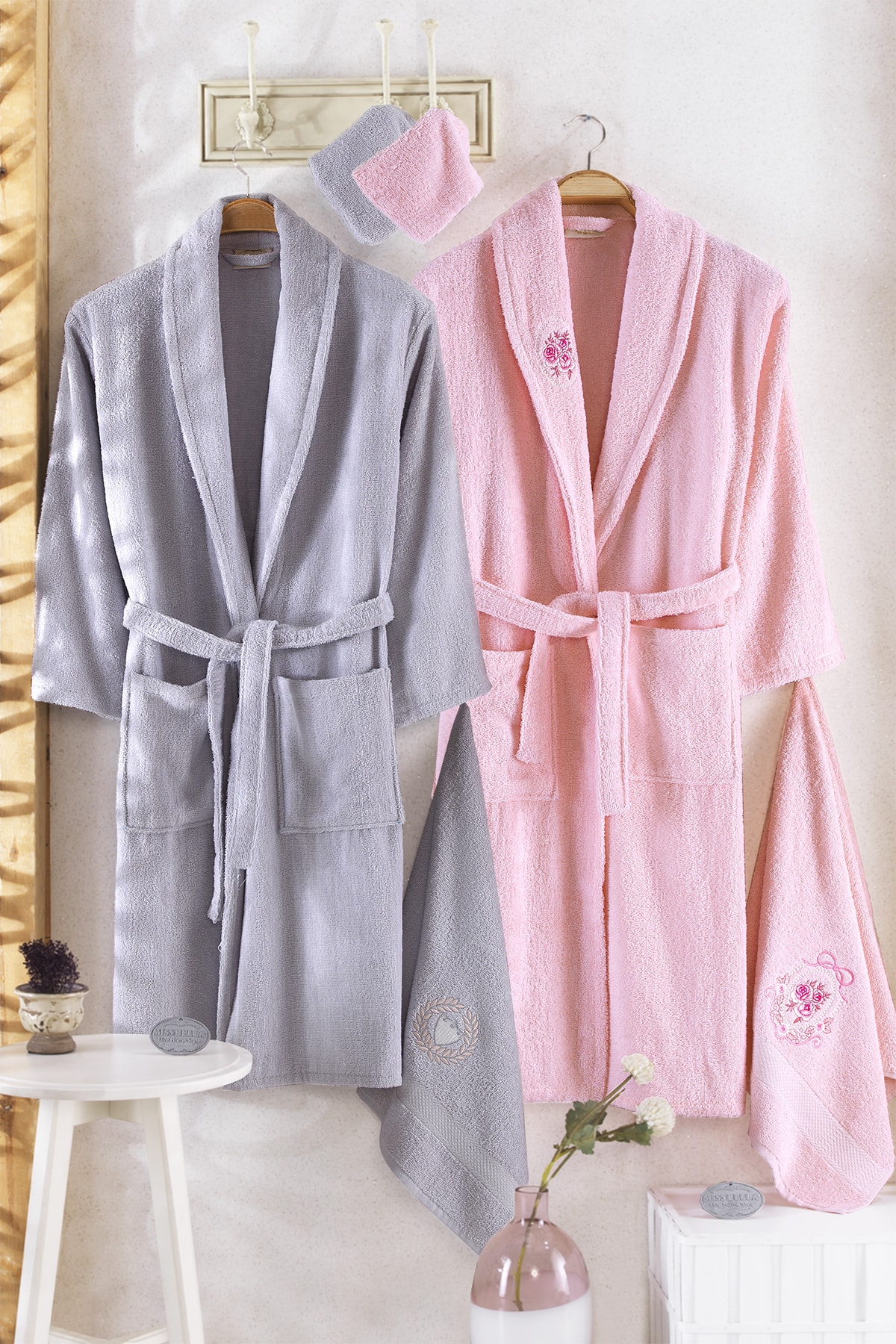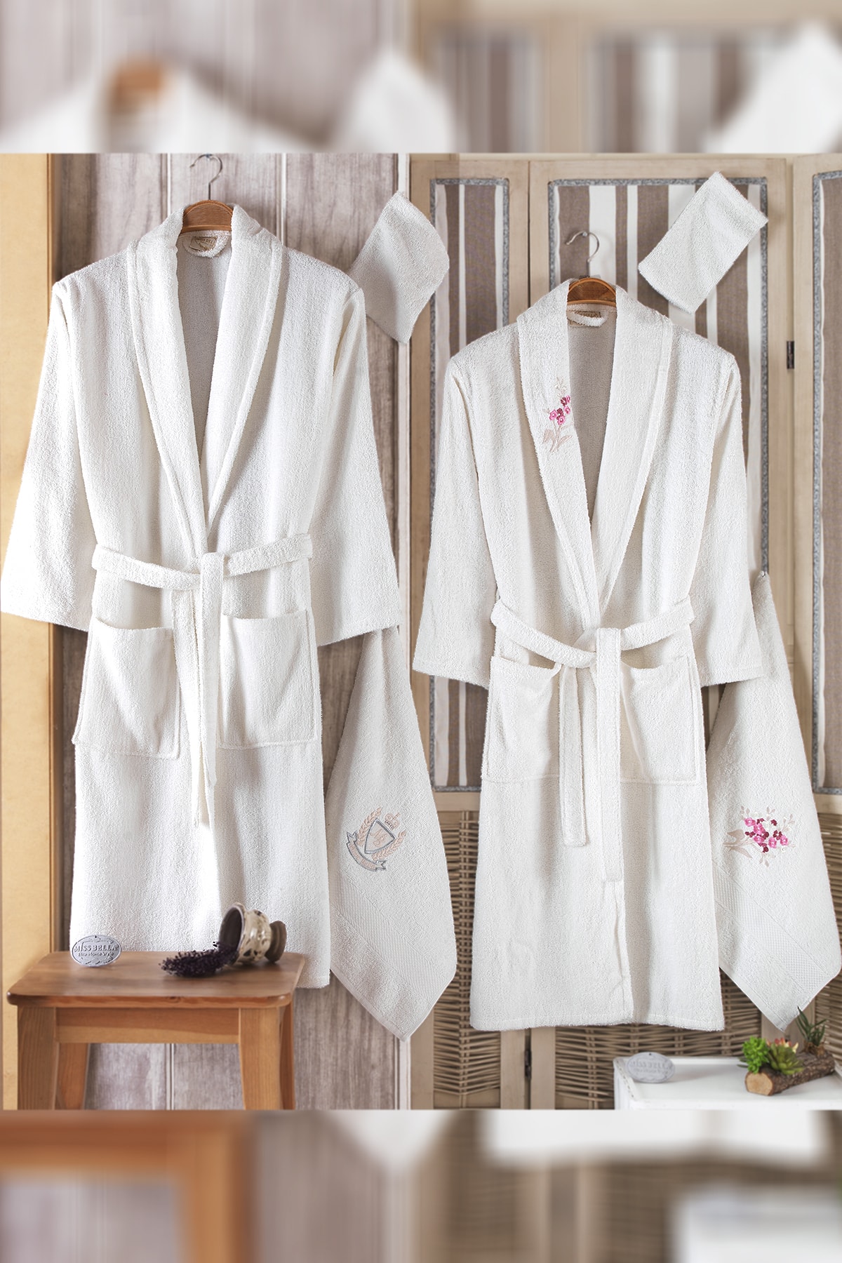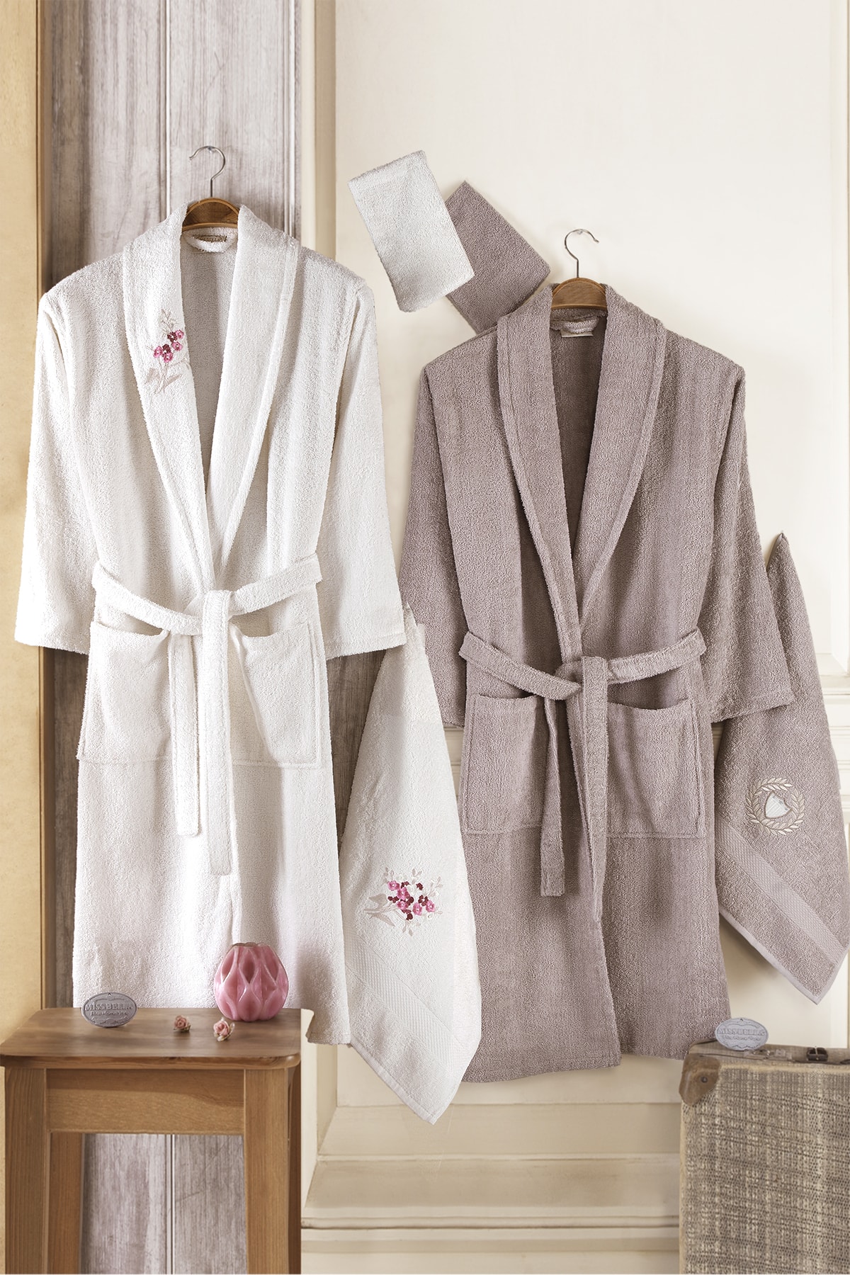 - Set halinde sunulan 8 parça bornoz seti, aile bireyleri için pratik ve şık bir seçenek oluşturur