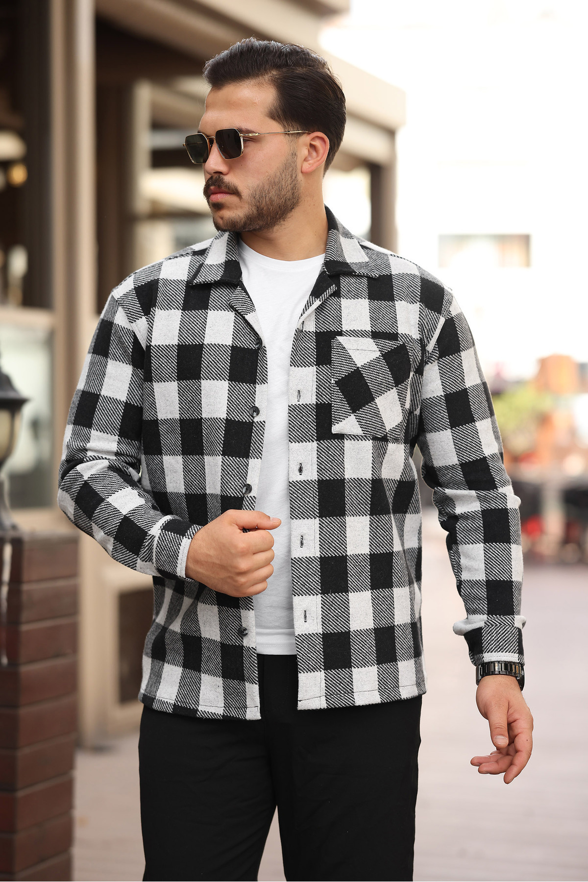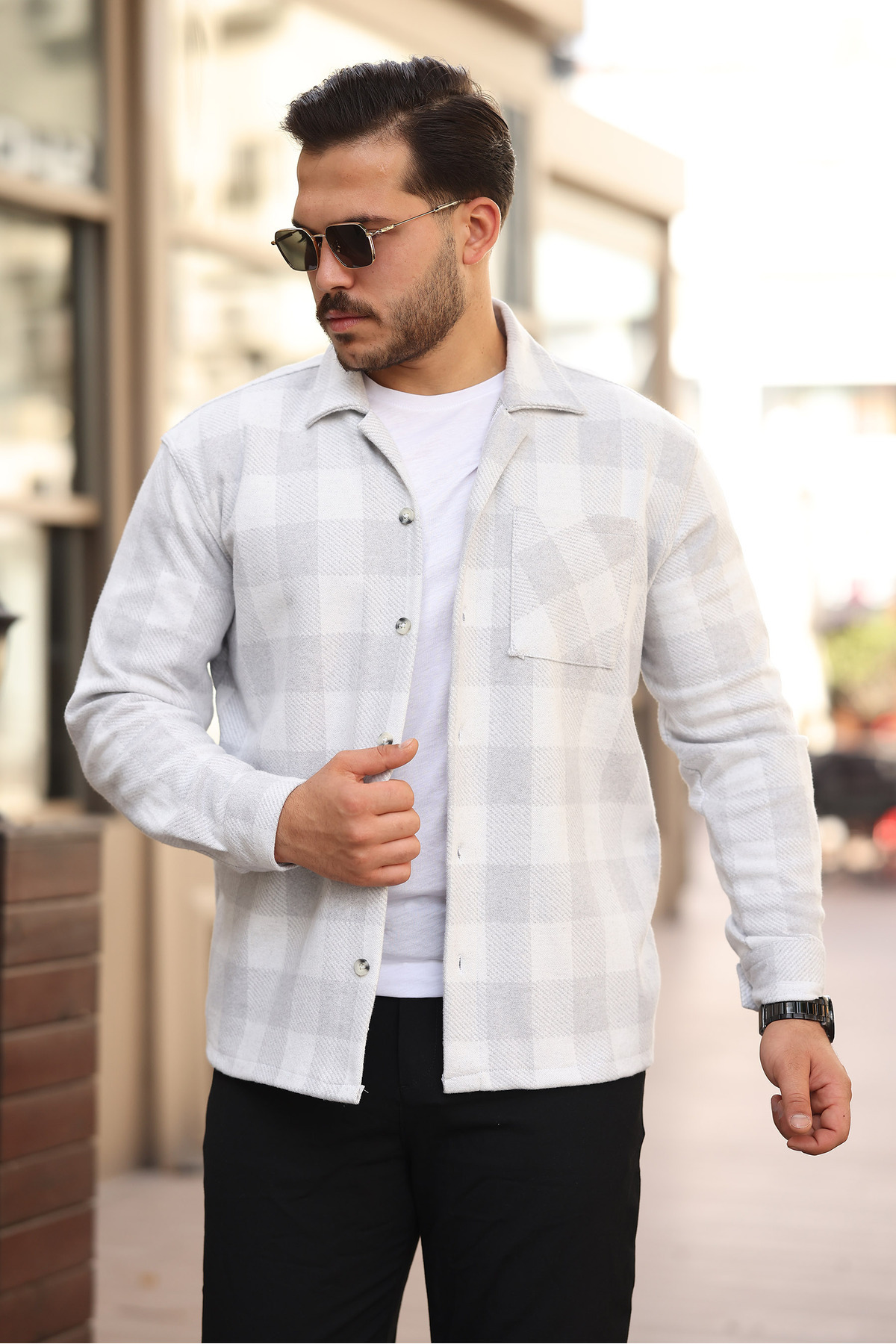 Erkek Slim Fit Tek Cep Kareli Hakiki Oduncu Gömleği Gri