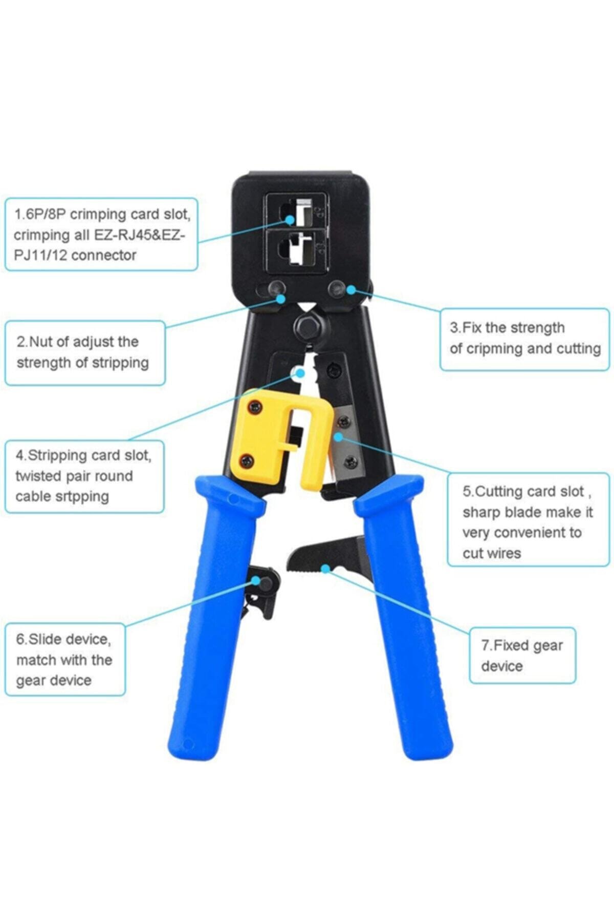 Koodmax EZ RJ45 RJ11 RJ12 CAT5 CAT6 Yeni Nesil Konnektör Pense Lüx Kolay Sıkma Pensesi ÖZELLİKLERİ - İdeal sıkıştırma kuvvetini uygulayacak şekilde tasarlanmış - Çok fonksiyonlu - Karbon Çelik Madde - Pratik kullanışlı - Temiz kesim - Sıkma, sıyırma ve bağlantı kesme işlevlerine sahiptir - Yorgunluğu azaltmak için plastik kaplı tutamaklar. - Crimps 8P8C/RJ-45, 6P6C/RJ-11 ve 6P4C/RJ-12 konektörler. - RJ11 (1-, 2-veya 3-pair) ve EZ RJ45 (4-pair) modüler fişler için kullanın. Stok Kodu : w2415-011