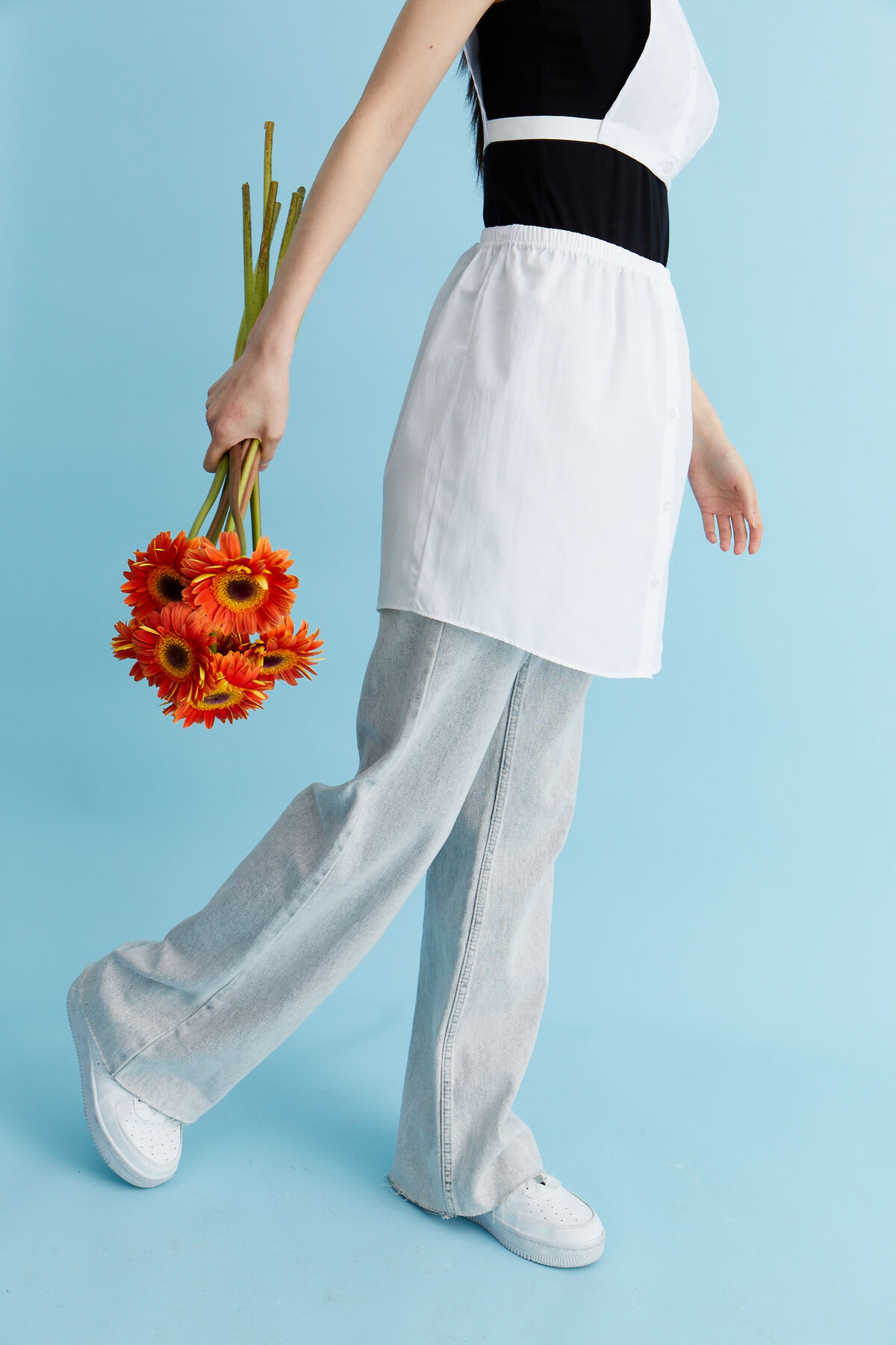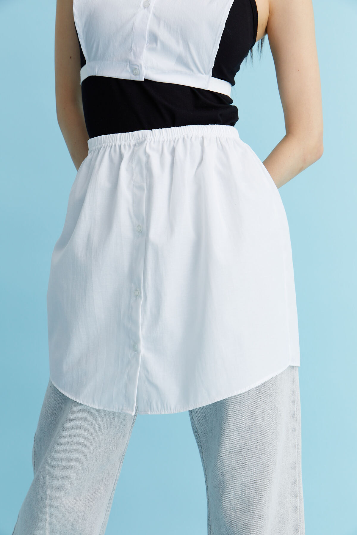 - Rahat ve şık bir görünüm sunan beyaz gömlek içlik etek, günlük kullanım için idealdir.