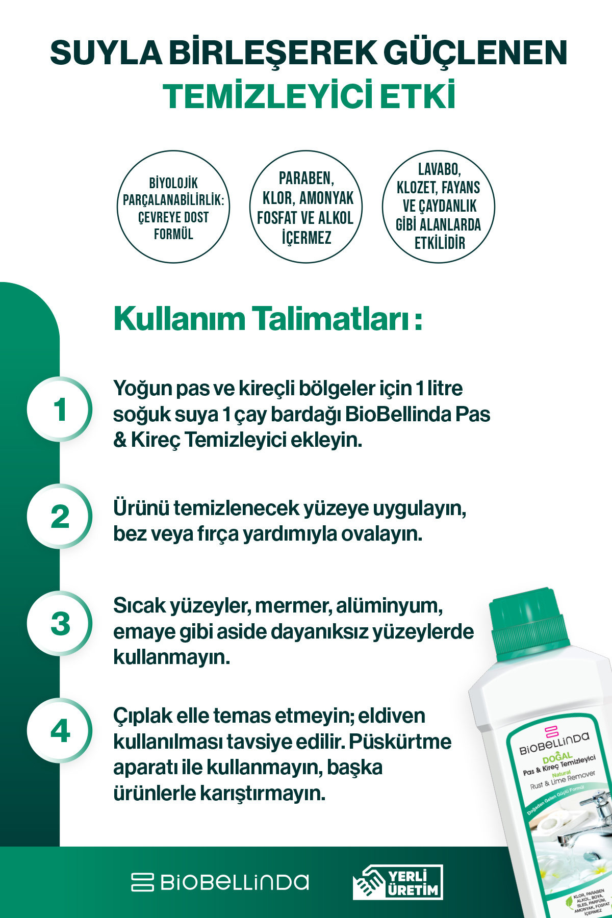 pas ve kireç oluşumunu engelleyerek mutfak, banyo ve diğer alanlarda hijyenik bir ortam sağlar.