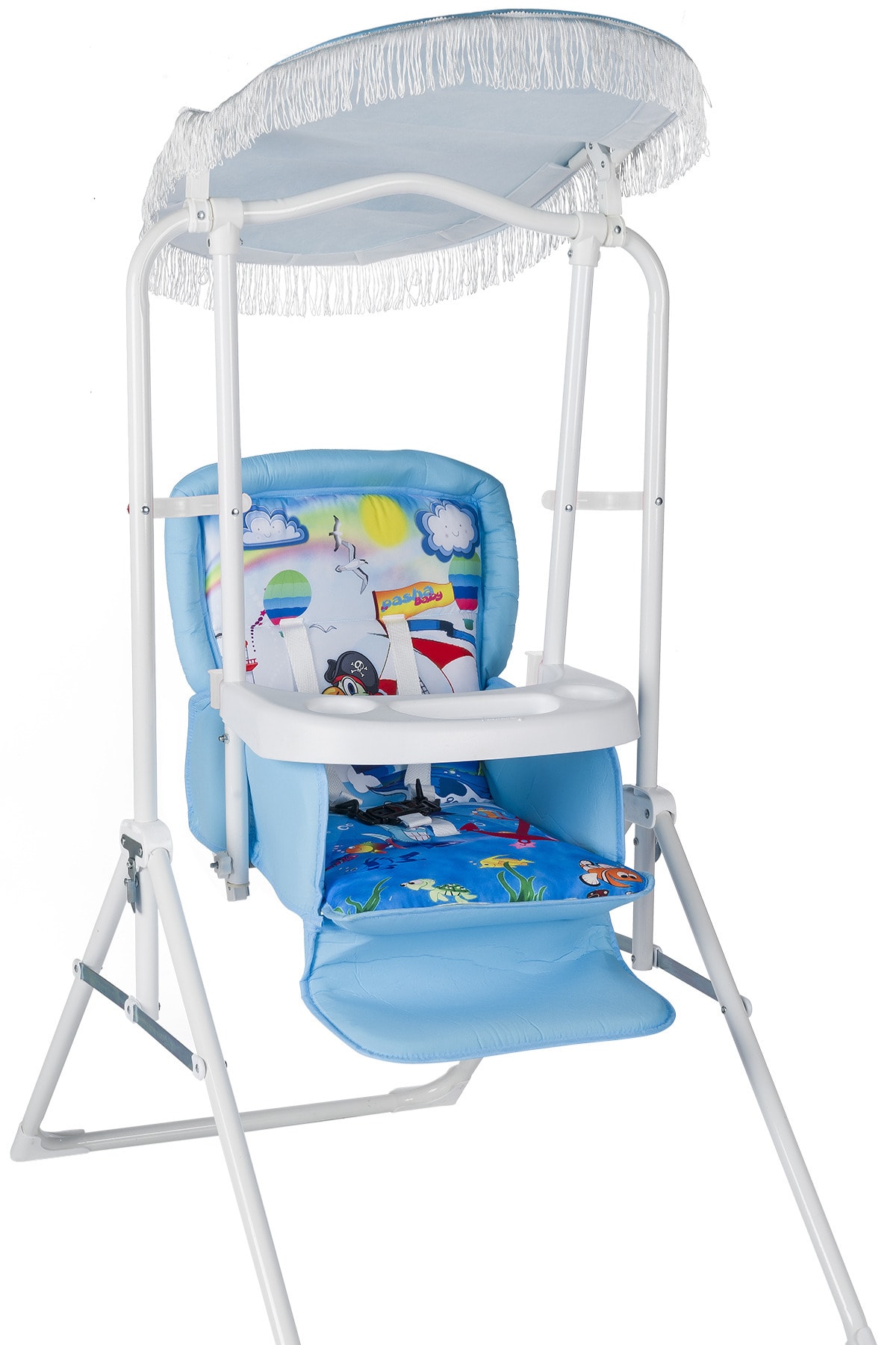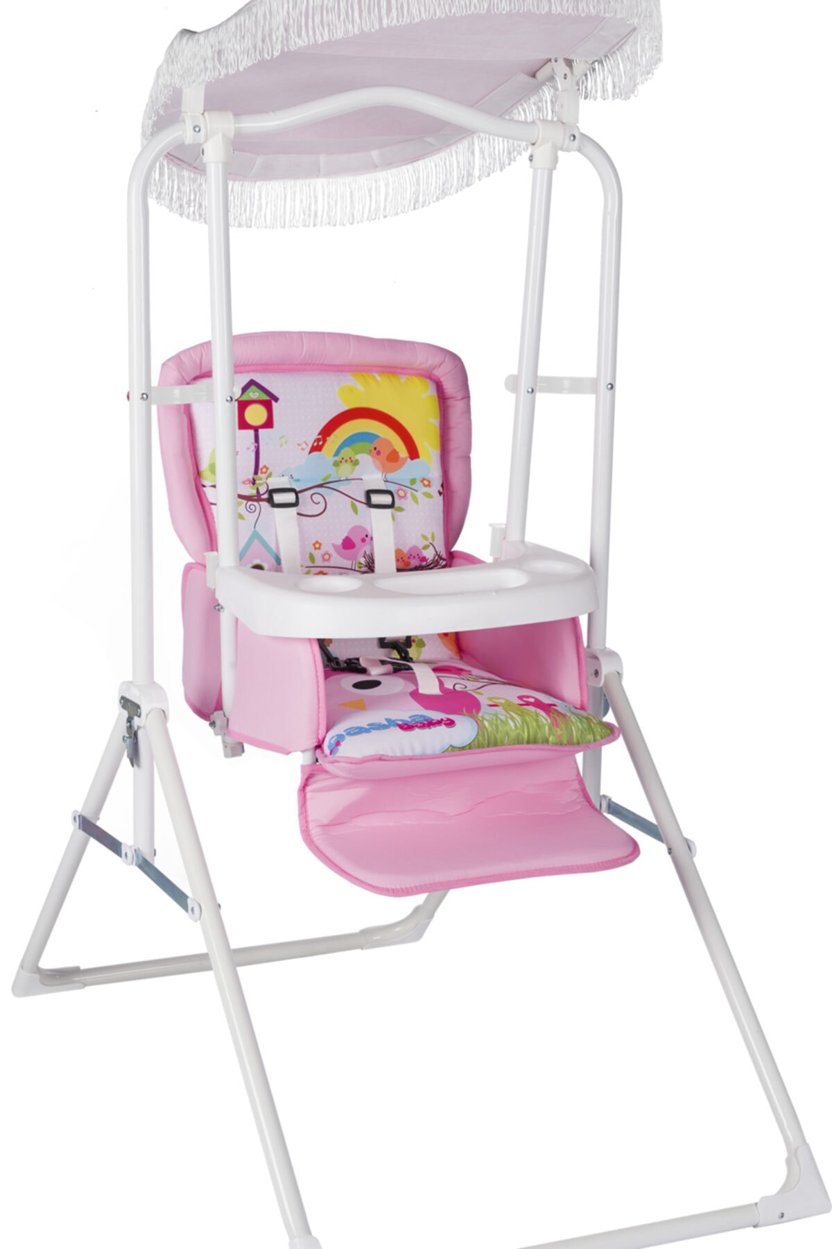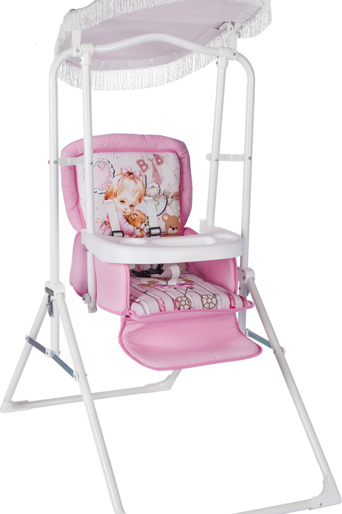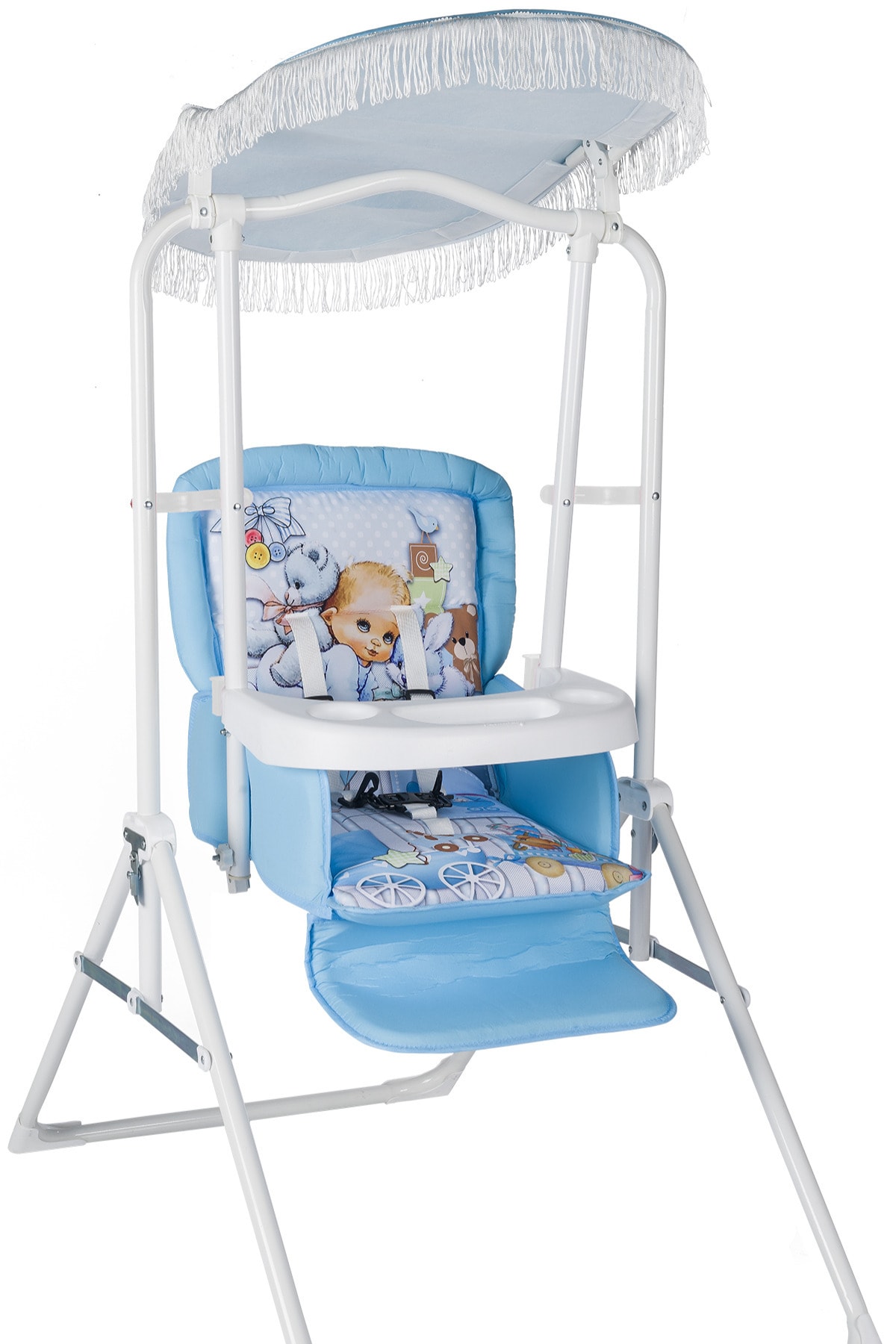 Bebeklerin güvenliği düşünülerek tasarlanmış, tekstil materyalden üretilmiş yapısıyla yumuşak ve konforlu bir oturma alanı sunar