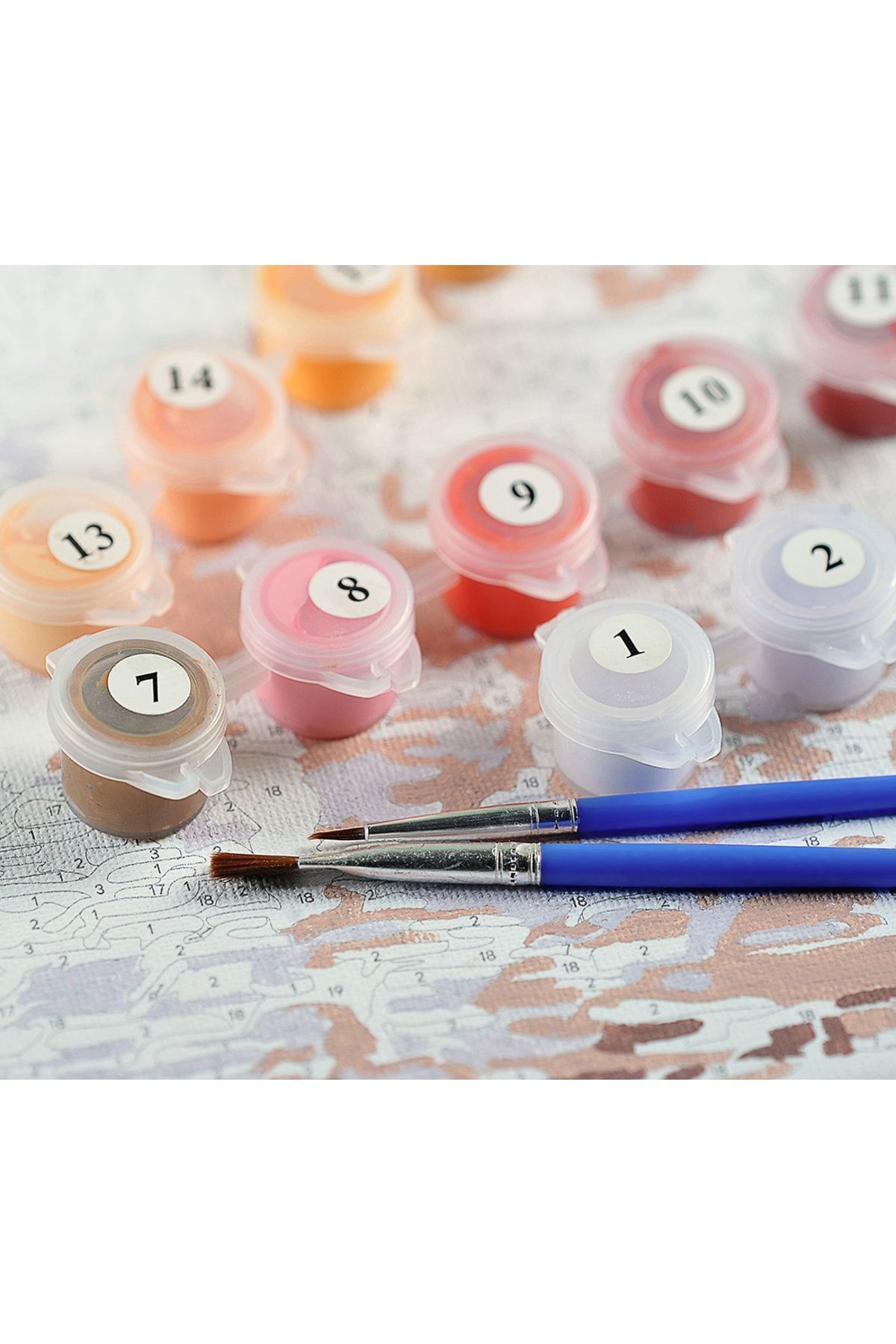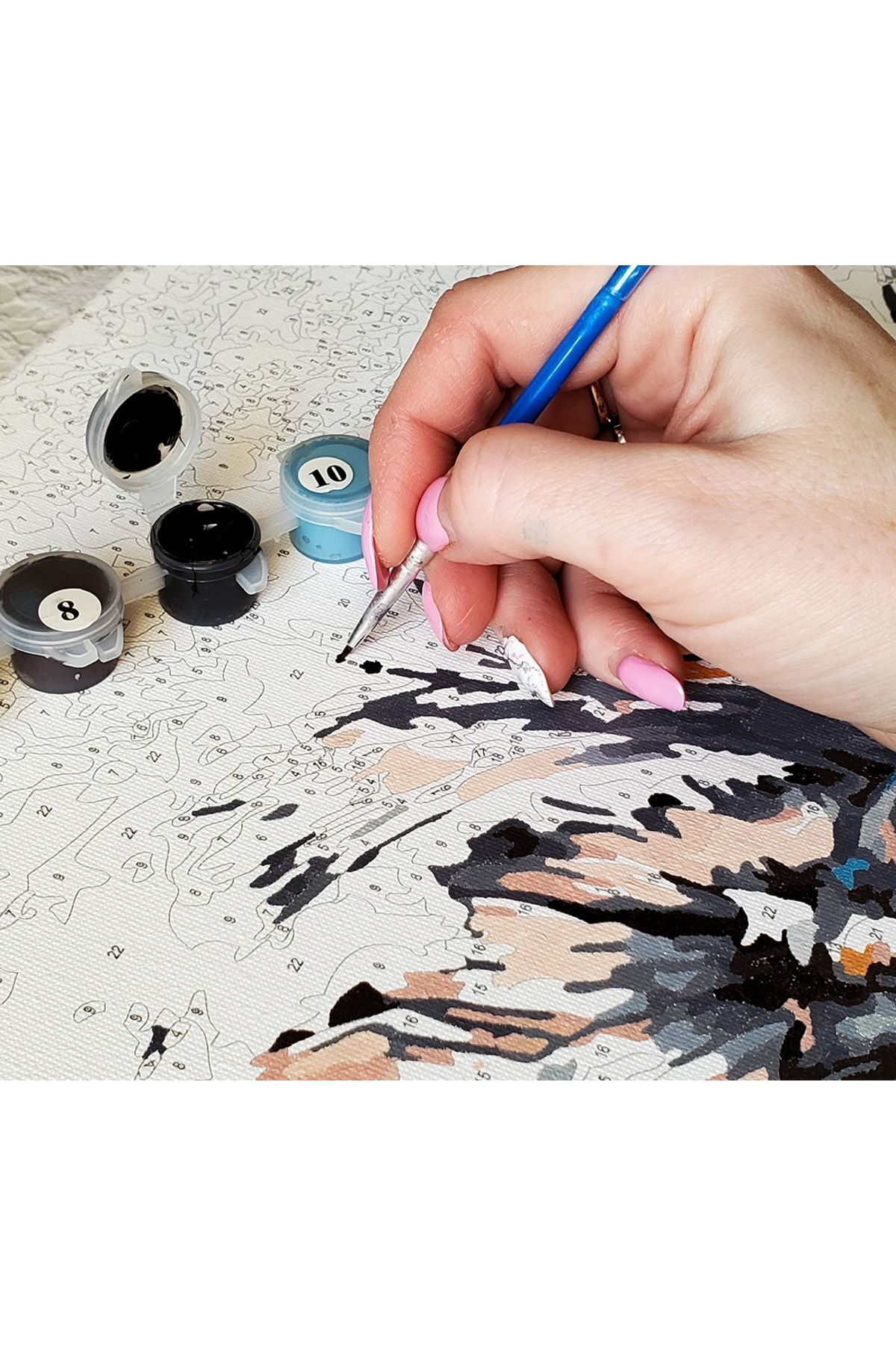 -40x50 cm botunda tuval şasesine gerilmiş %100 pamuklu tuval bezi -3 adet farklı boyutta akrilik boya fırçası (ince, orta, kalın) -Yeterli miktarda günlük hazırlanmış akrilik boyalar, -Referans Kağıdı Tek yapmanız gereken tablo üzerindeki numaralarla kutu üzerindekileri eşleştirmek.