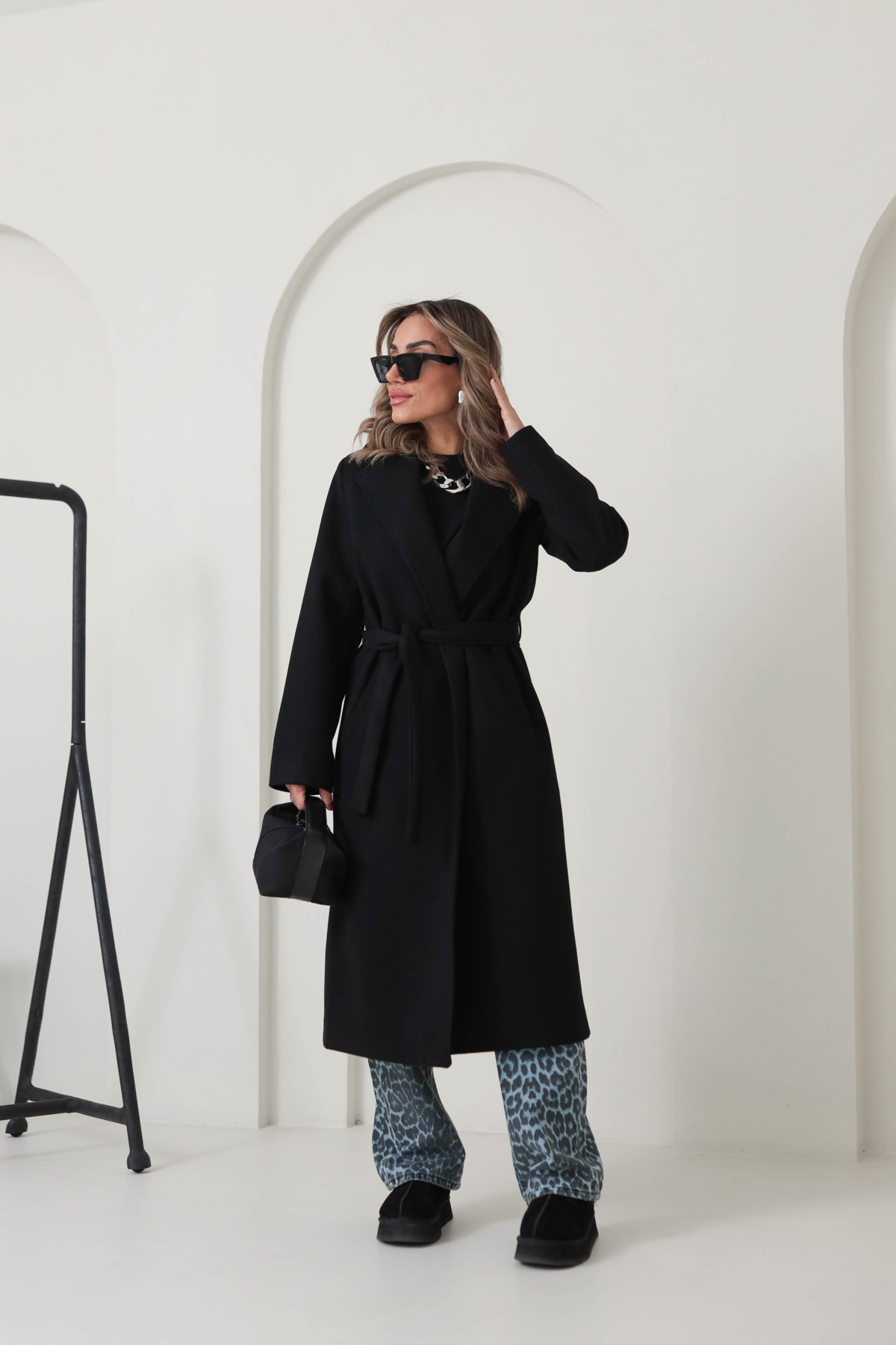 - Siyah renkteki bu kaşe kaban, her gardıropta şıklığıyla öne çıkıyor.