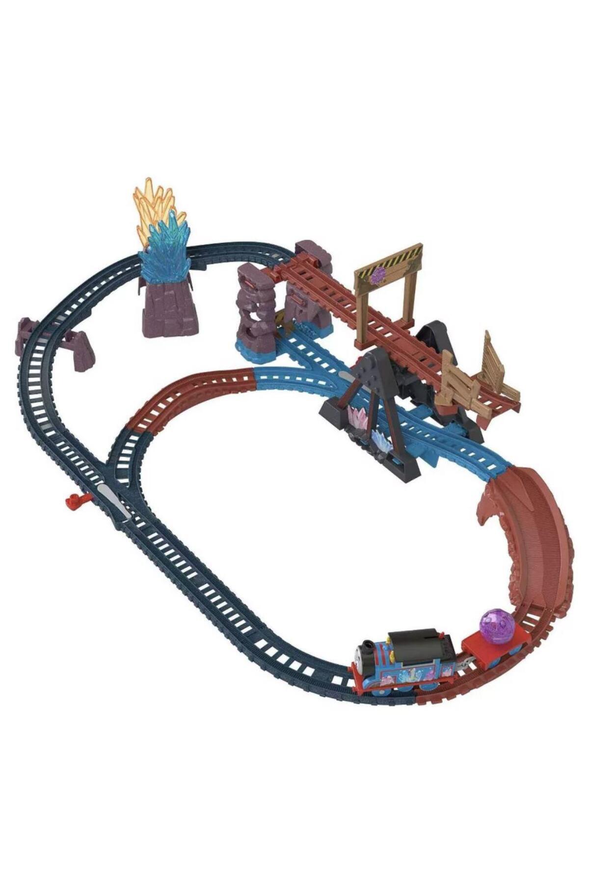 9 parça ray, süper havalı bir köprü ve eğlenceli Crystal Caves detayları ve yükü içeren bu aksiyon dolu tren seti, genç kondüktörlerin Thomas'ı özel yükünü tekrar tekrar teslim etmesi için mağaralara göndermesine olanak tanıyor! Thomas & Friends: All Engines Go!™ bölümü "Mystery of Lookout Mountain"ın macera dolu eğlencesini No.1 Blue Engine Thomas'a sahip bu motorlu tren setiyle yeniden yaşayın! Thomas'ı teslimatını tamamlaması için koşarak Kristal Mağaralara göndermek için motorun üstündeki düğmeyi çevirin.