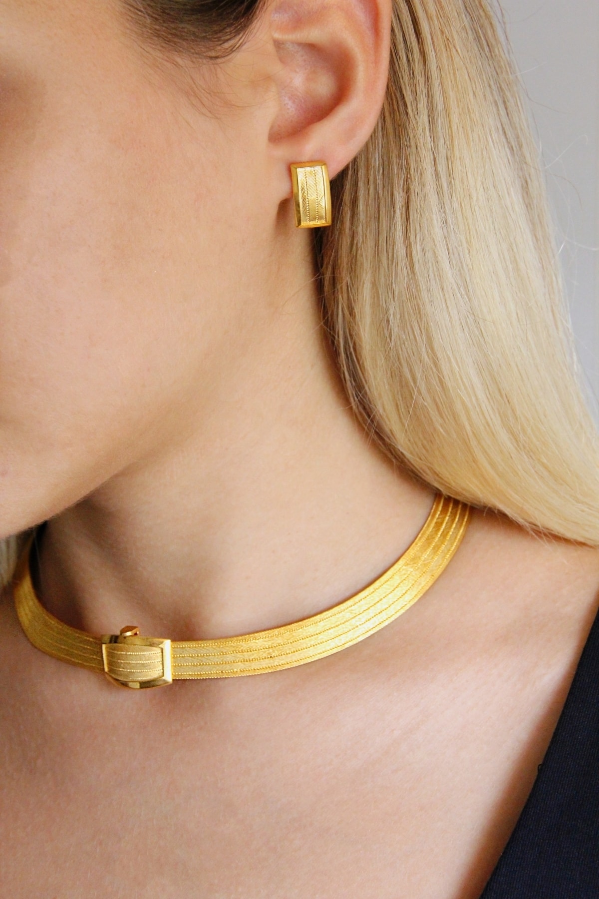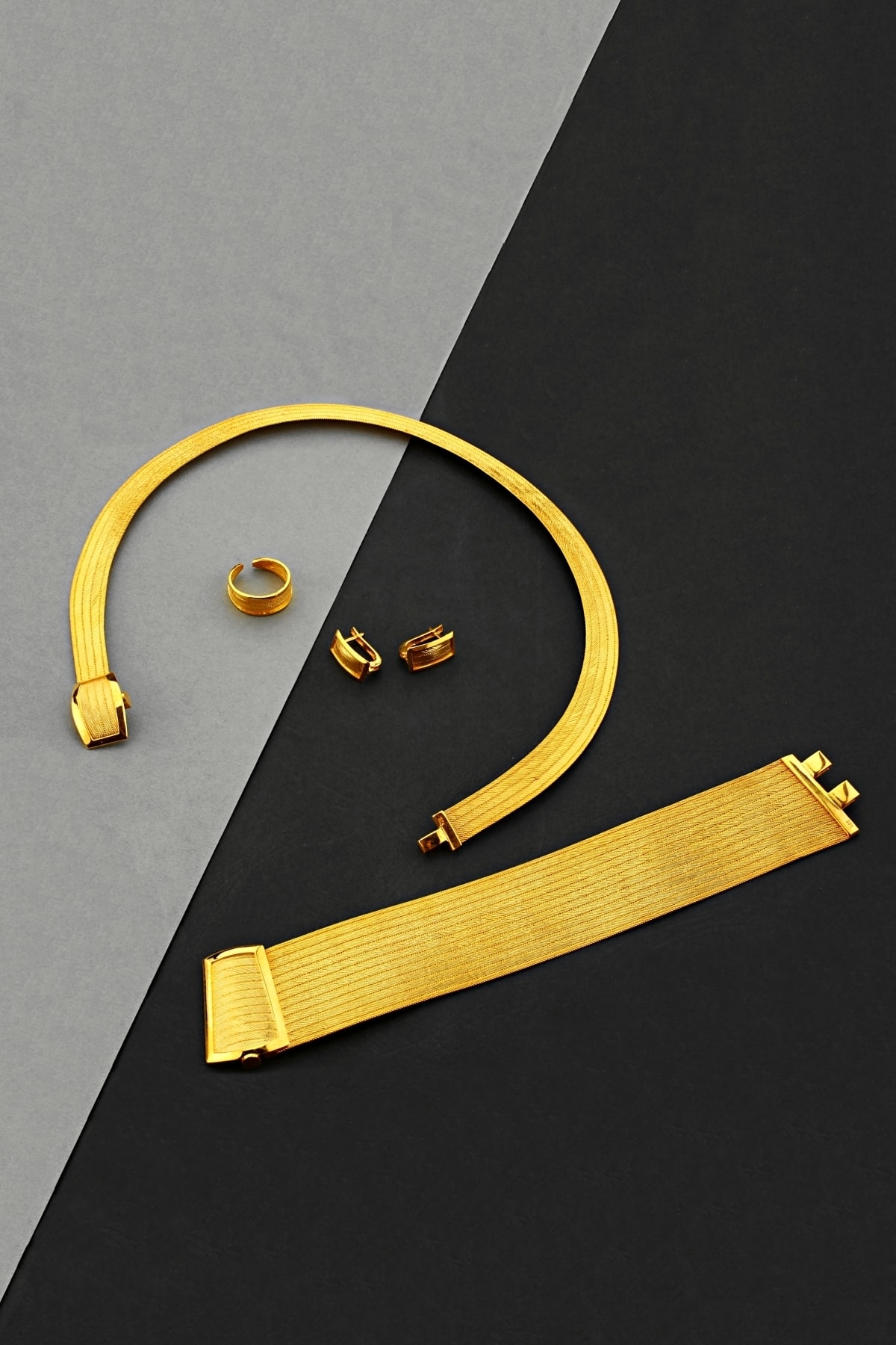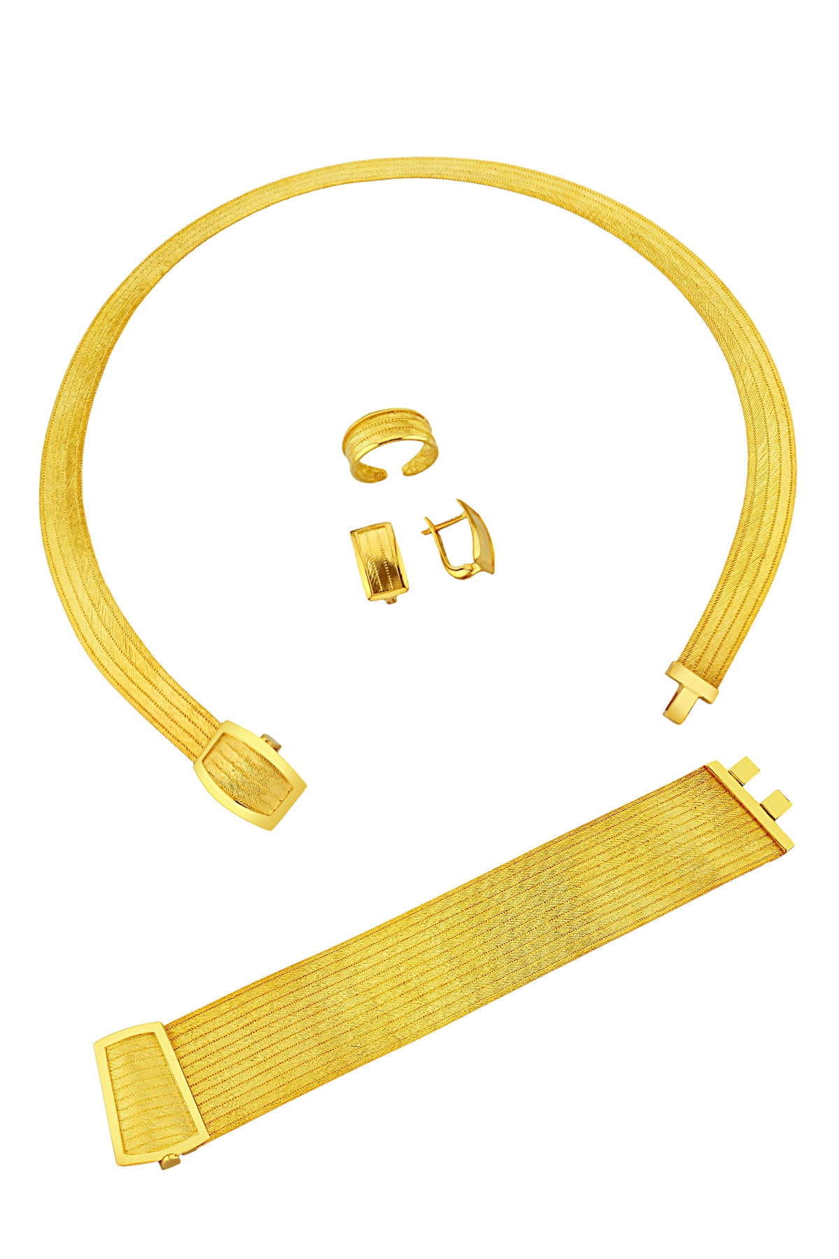 Gerdanlık, bileklik, küpe ve yüzükten oluşan dörtlü bir settir.