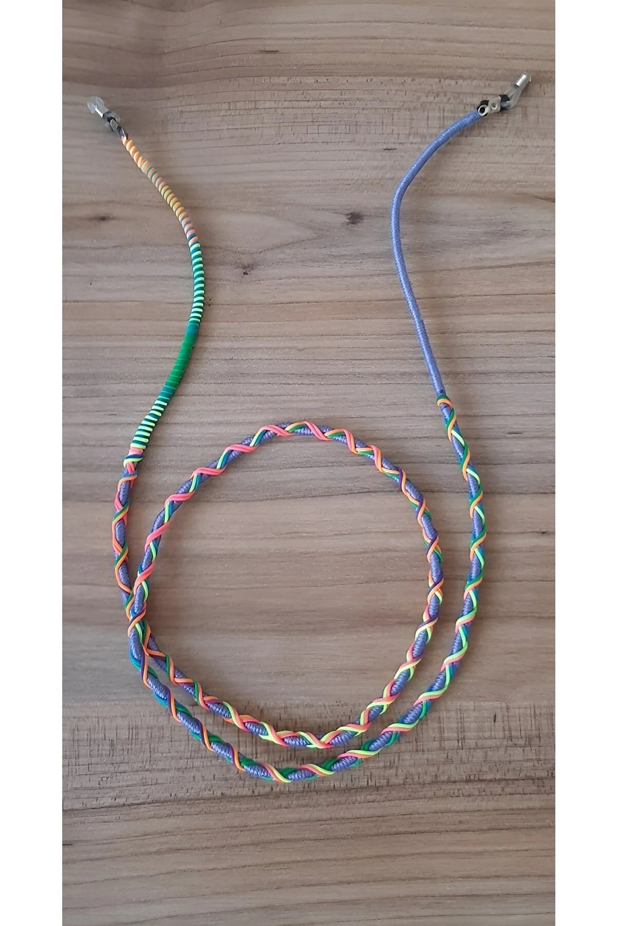 Rengarenk örgülü gözlük ipleri, gözlüklerinize renk katmak,tarzınıza tarz katmak vehayatınıza kolaylık sağlamak için tasarlanmıştır