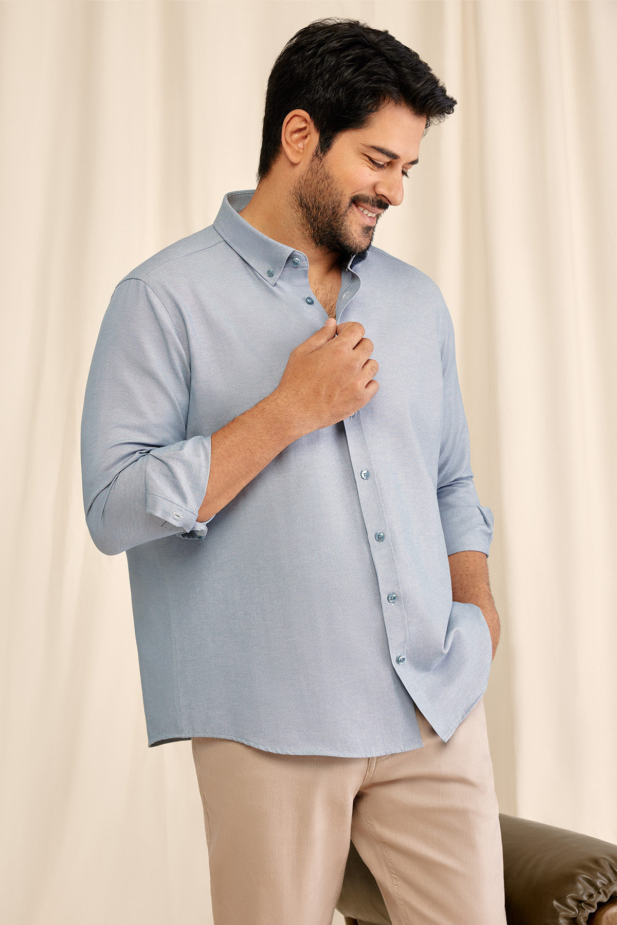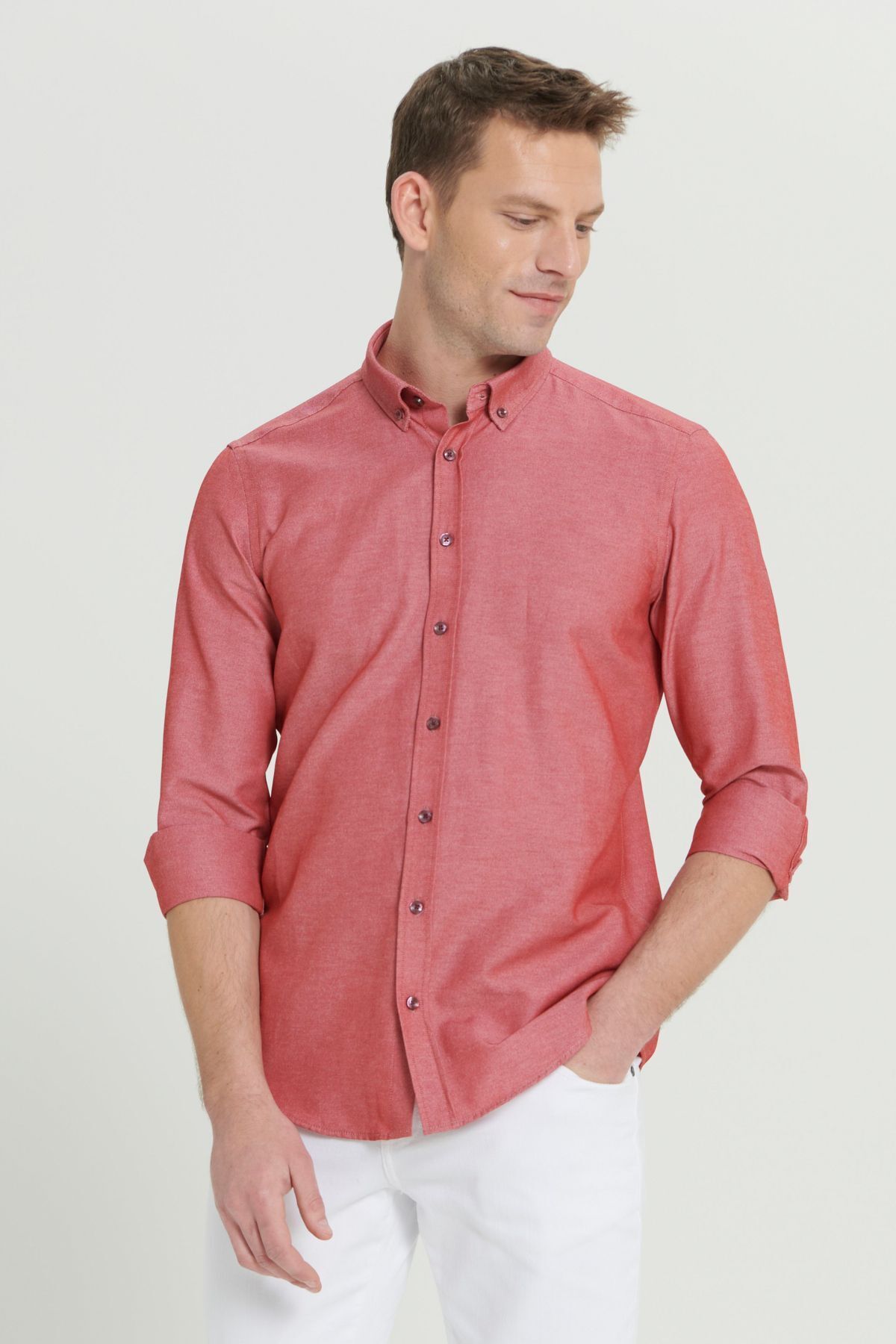 AC&Co / ALTINYILDIZ CLASSICS Tailored Slim Fit Dar Kesim Düğmeli Yaka Oxford Gömlek, Ürün Bedeni: L, Manken Bilgileri: Boy: 1