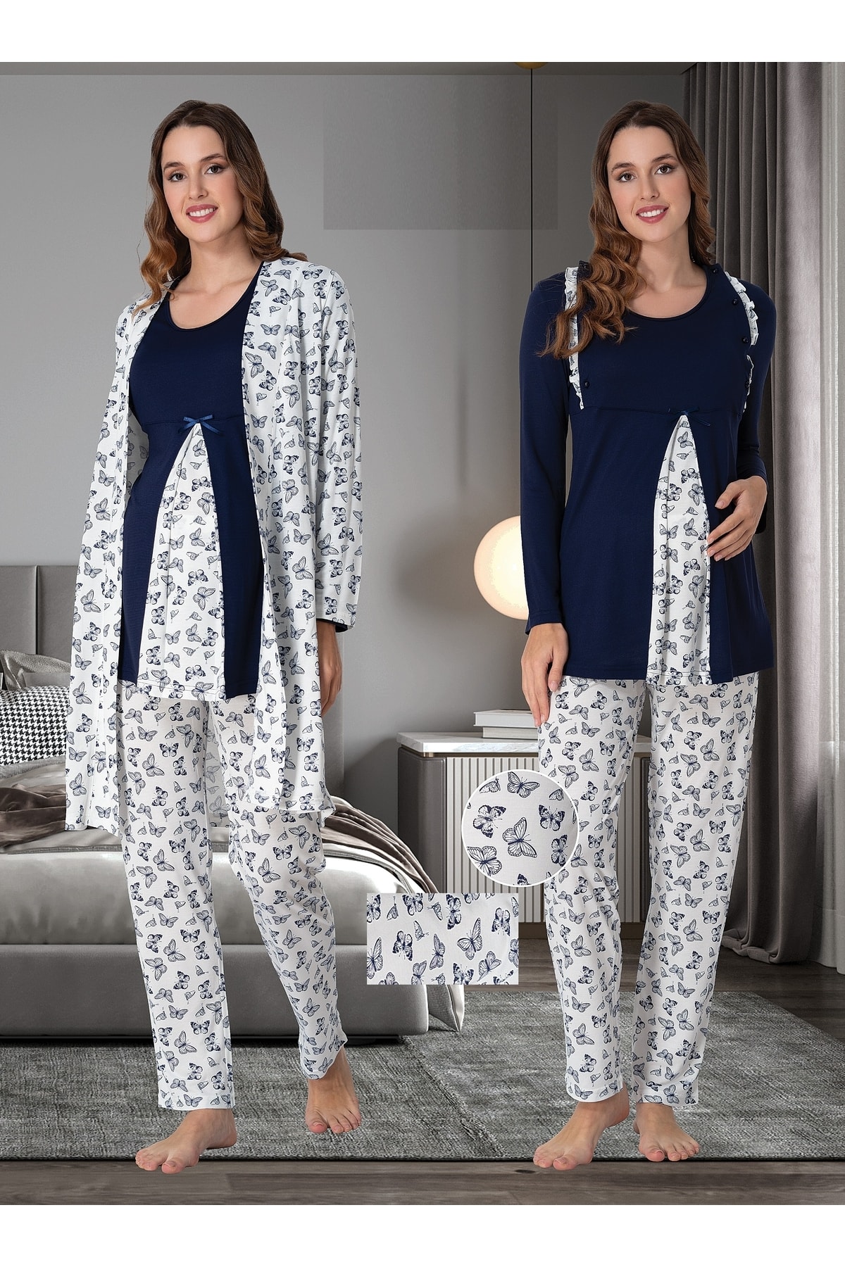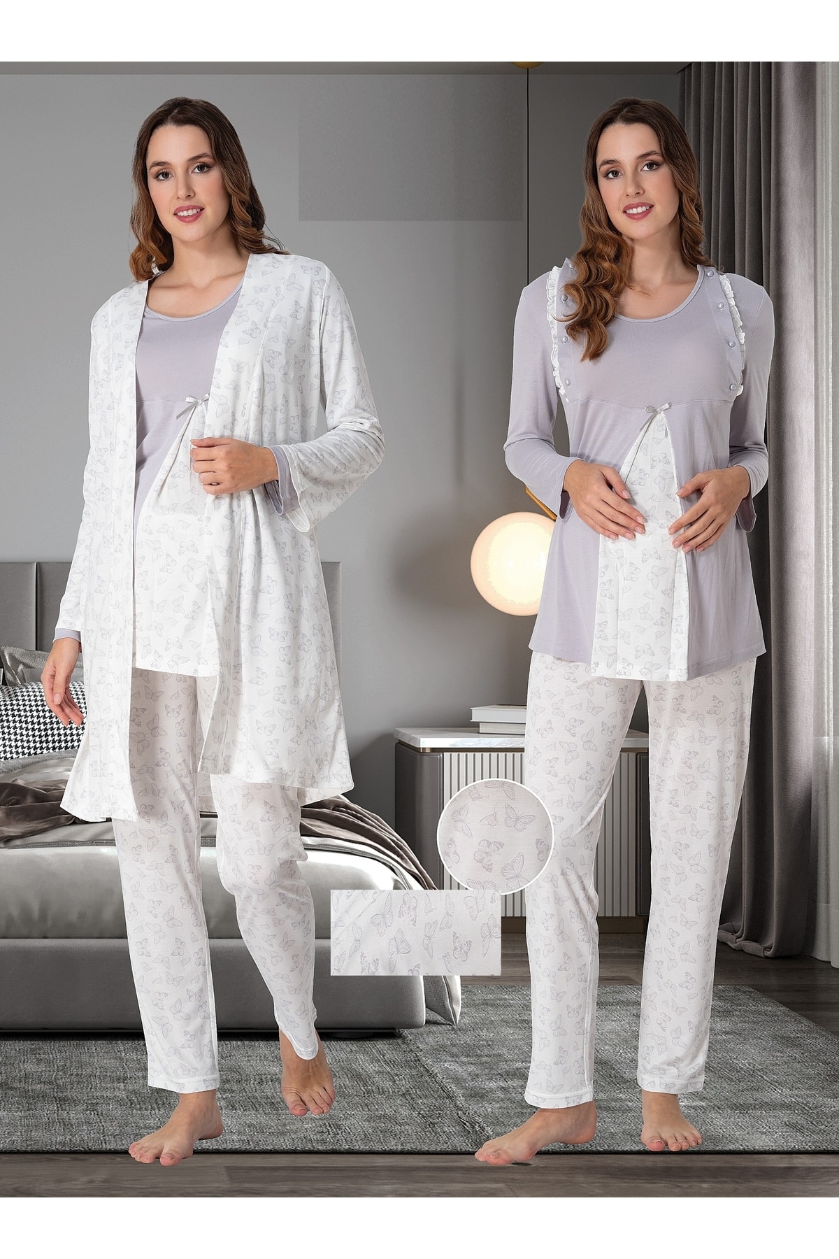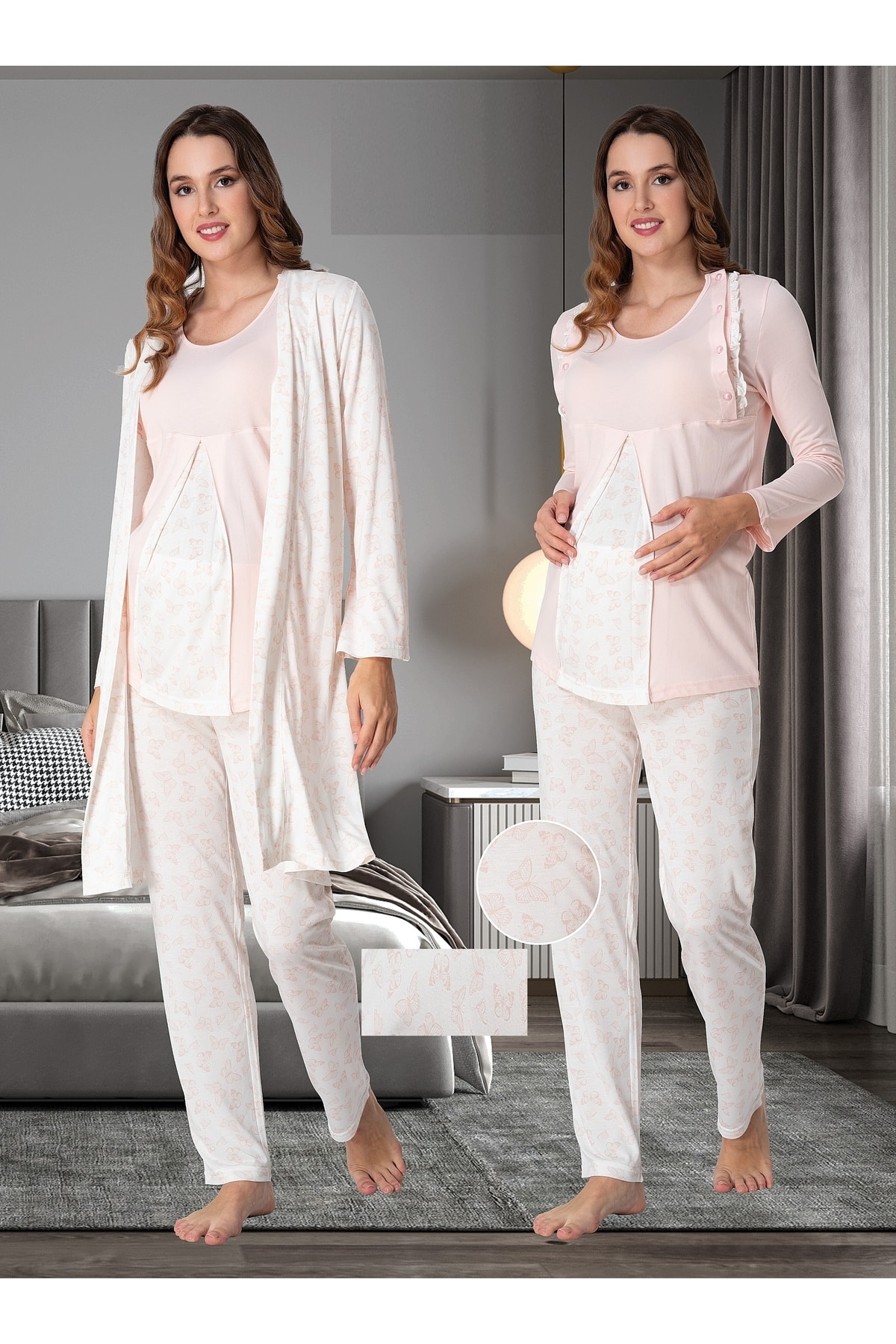 Kelebek Desenli Lohusa Pijama Sabahlık Takımı