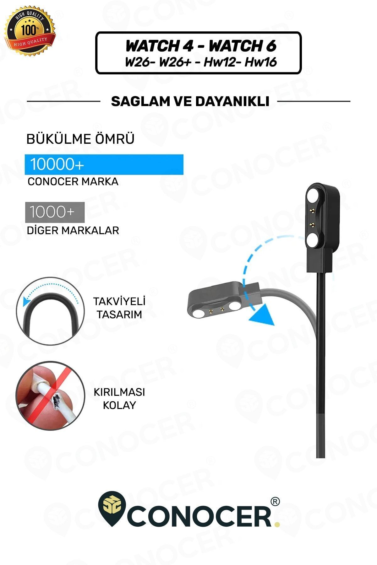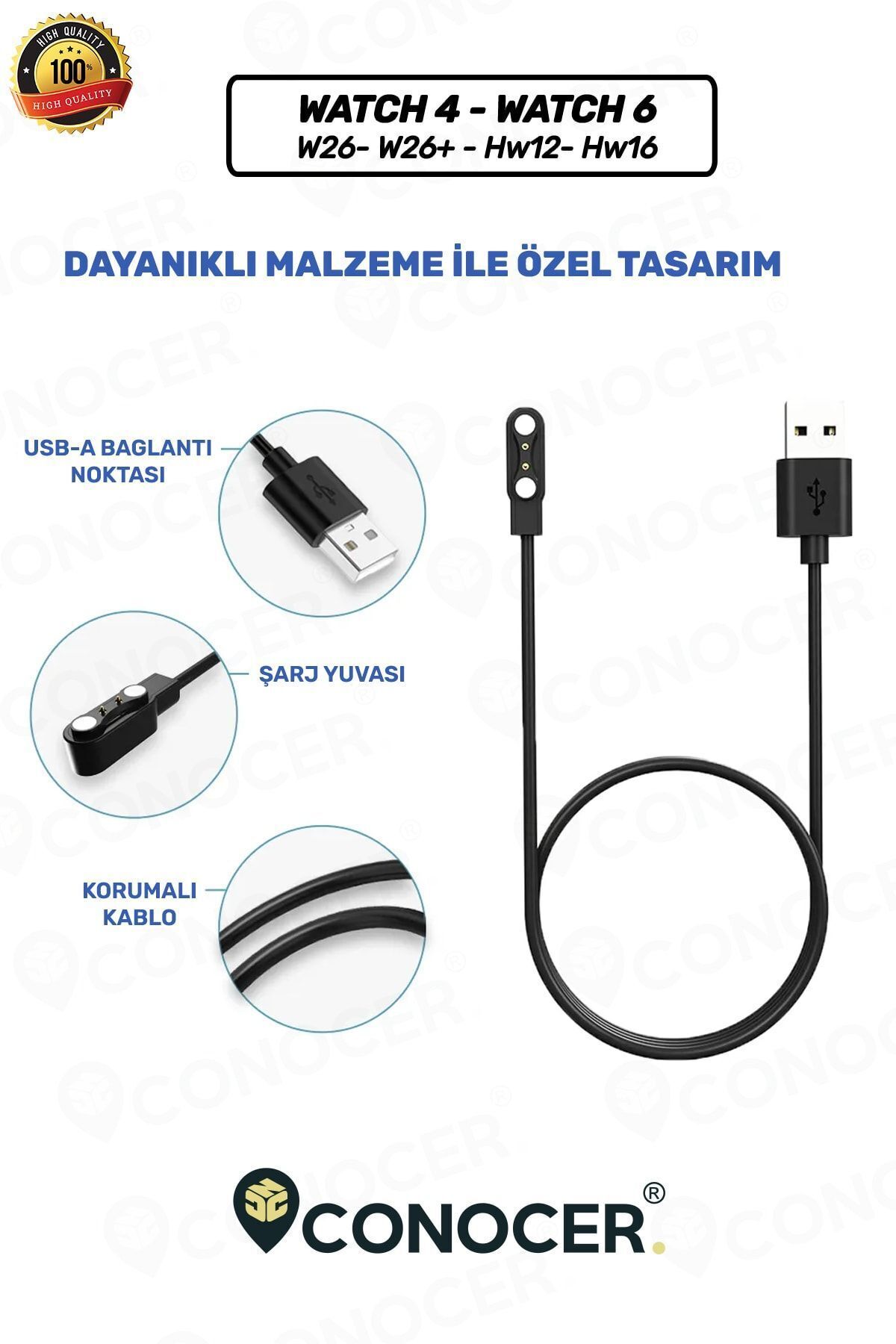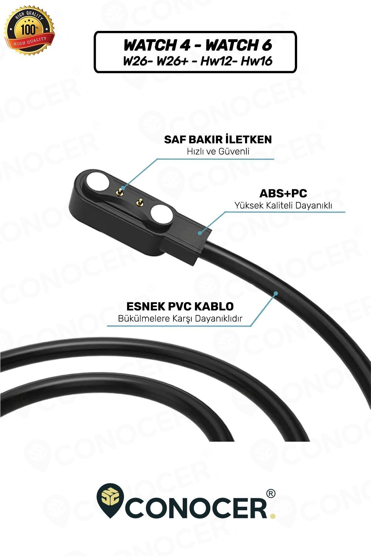 Watch 6 Şarj Kablosu W26- W26 Plus- Hw12- Hw16 Uyumlu Akıllı Saat Şarj Kablosu Yüksek Kalite