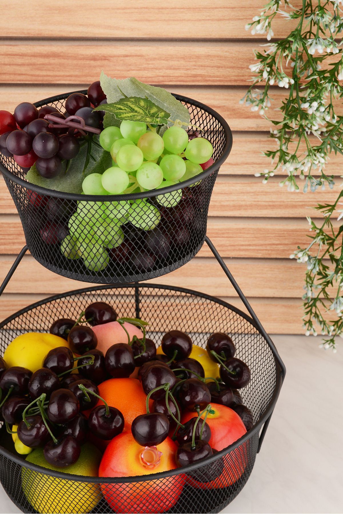 - İki katlı tasarımı ile hem meyve hem de sebzelerinizi düzenli bir şekilde saklamanızı sağlar