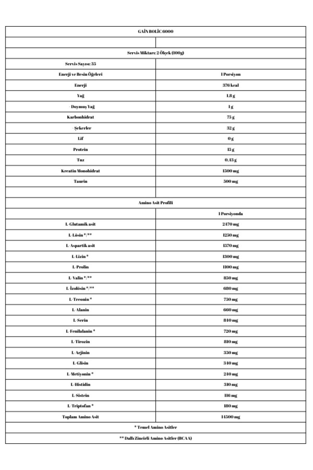 43g Kreatin Monohidrat 1500mg Taurin 500mg Olimp Gain Bolic 6000, içeriğinde( bitki kaynaklı hariç) üç farklı protein kaynağı, kreatin ve taurin, bulunduran formülüyle sporcuların kas büyümesi ve kilo alımı süreçlerinde destek olan bir sporcu gıdasıdır