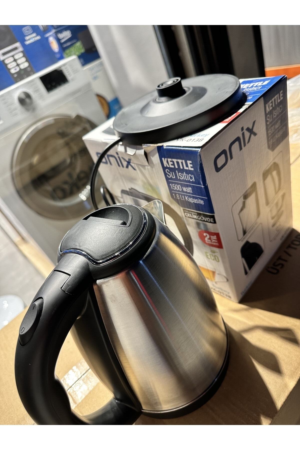 Çelik paslanmaz Onix hk-600 1.8lt su ısıtıcı 1500 watt Otomatik kapatma 1,8 lt su kapasitesi Paslanmaz rezistans Kablosuz kullanım 2 yıl garanti