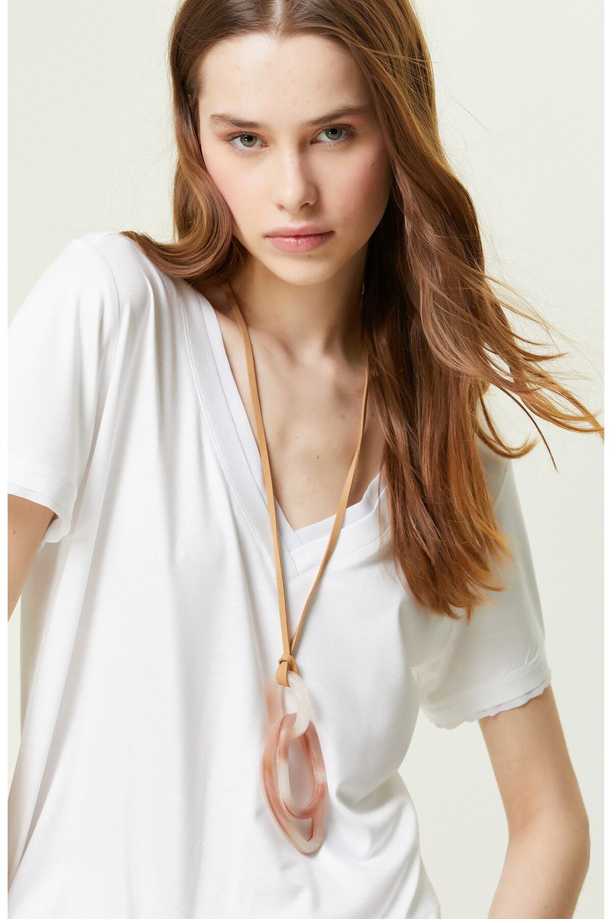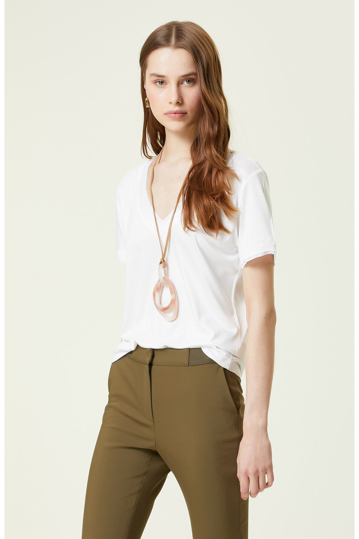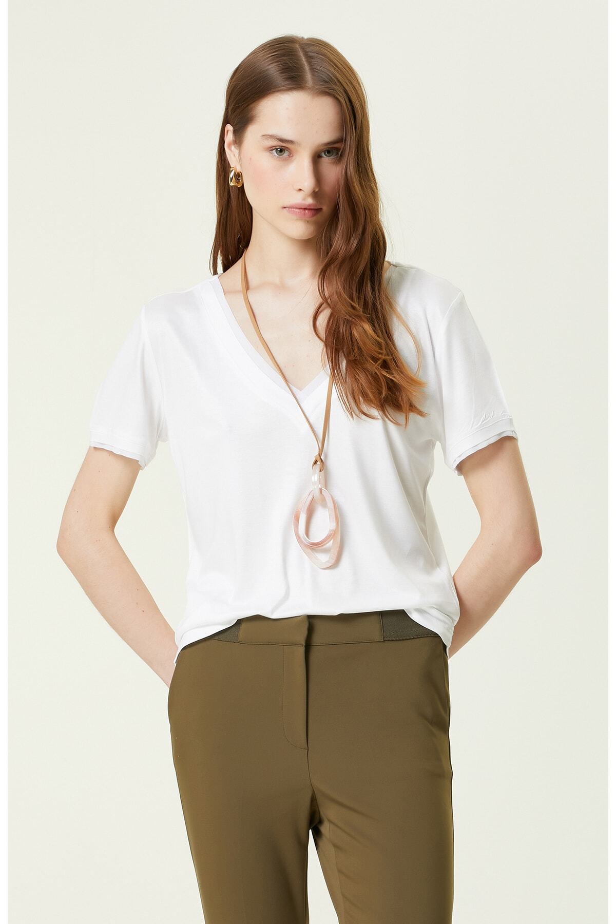 Stil Notu: Stil Sahibi Kadınların Hem İş Hem De Günlük Yaşamında Tercih Ettiği Beyaz Kısa Kollu V Yaka T-Shirt, Network’Ün Yenilikçi Moda Anlayışını Gözler Önüne Serer. Network Smart Casual Koleksiyonunun Öne Çıkan Parçaları Arasında Yerini Alan Tasarım, Kısa Kol Ve V Yaka Detaylarıyla Zenginleştirilir. Tamamen Viskozdan Elde Edilen Yapısıyla Sağladığı Konfordan Faydalanarak Ve Yaz Sezonunda Değerlendirebilirsiniz. Yumuşak Penye Dokusu, Zamansız Kadının İçerisinde Son Derece Rahat Hissetmesini Sağlar. Yaka Kısmı Ve Kol Uçları Garnili T-Shirt, Slim Fit Kesimli Şekilde Tasarlanır. İddialı Bir Kombin Oluşturmak Adına Parçayı