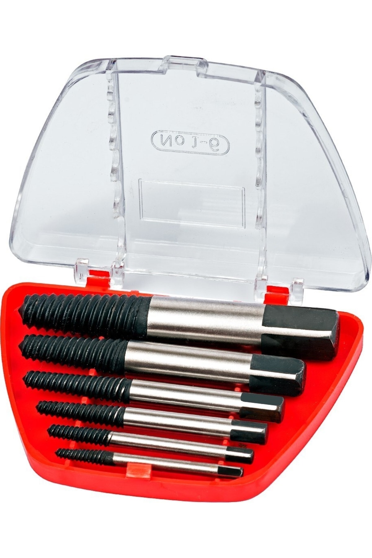 Ters Kılavuz Takımı 6'lı ? Kırılmış civataların veya dişli saplamaların çıkarılması için ? Çıkarılacak parçaya bir delik delinir ve çıkarıcı sol yönde bu deliğe vidalanır.