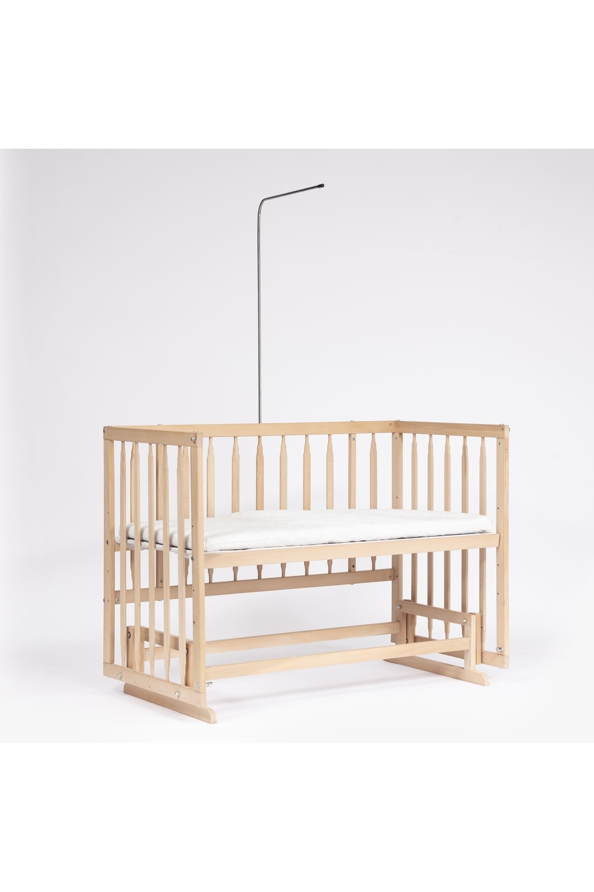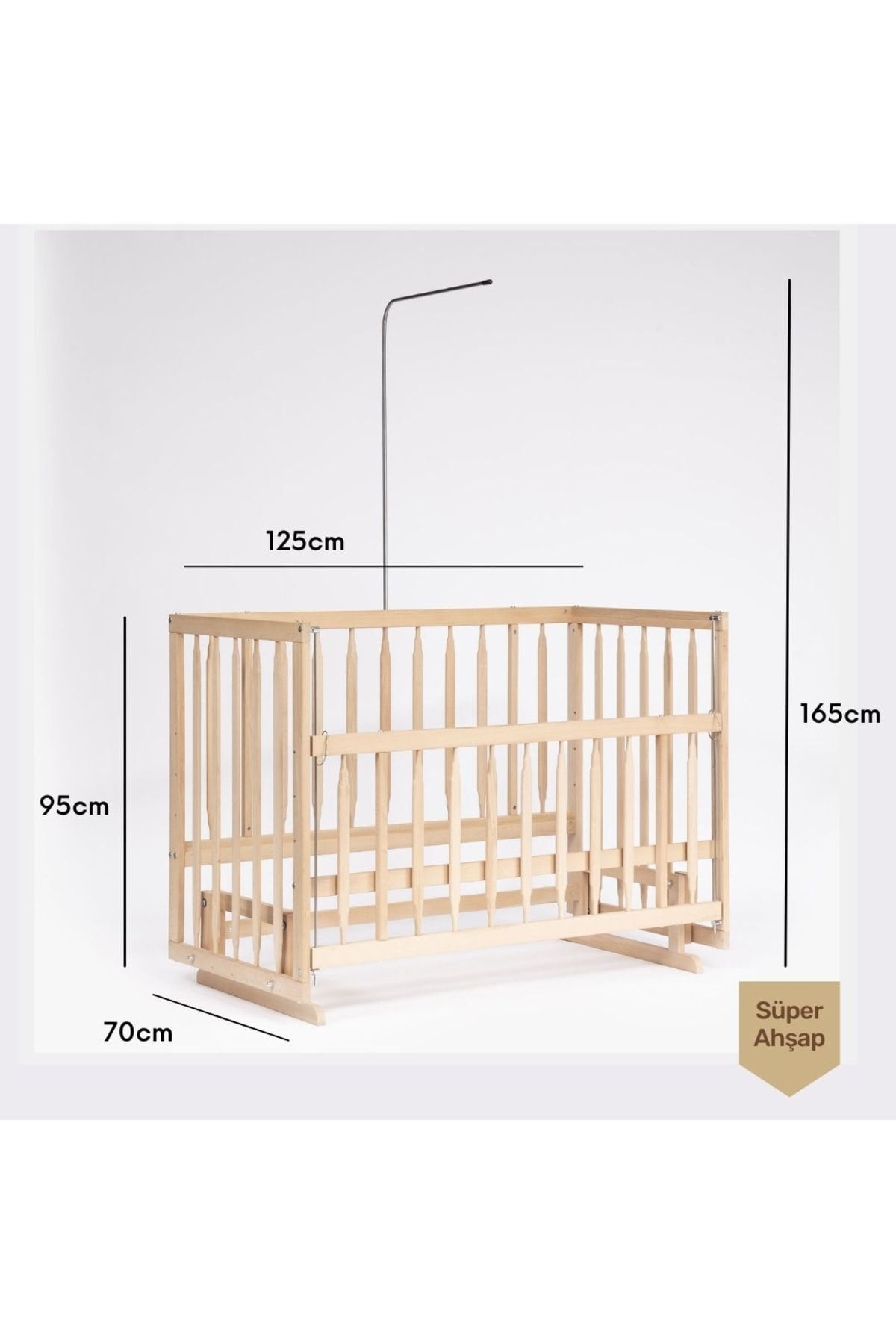 Süper Full Natural Ahşap Beşik 4 kademeli Anne Yanı Sallanır Bebek Beşiği 60x120 cm