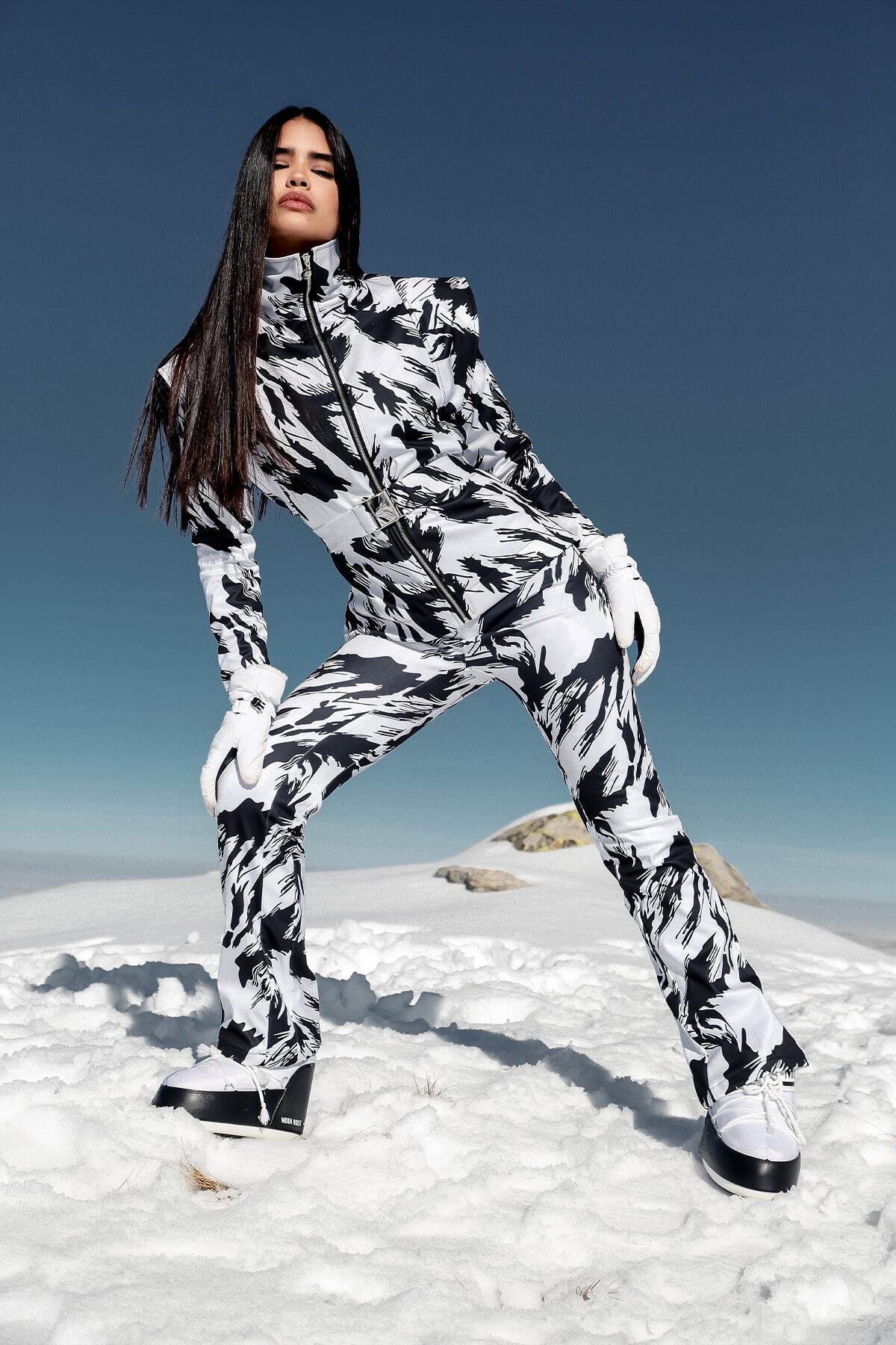 Siyah beyaz desenli , su geçirmez üstü örtülü metal fermuar , metal logo düğmeli , tasarım kayak pantolonu 1.