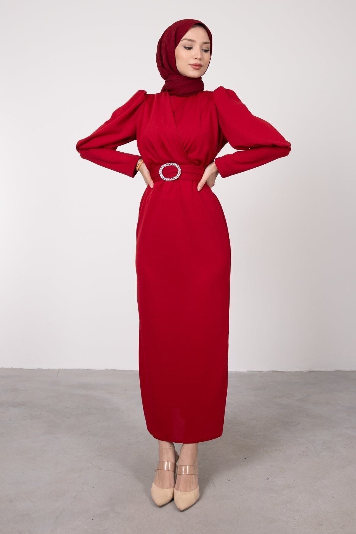 Kemerli bel tasarımı sayesinde vücut hatlarınıza uyum sağlayarak şık bir siluet oluşturur