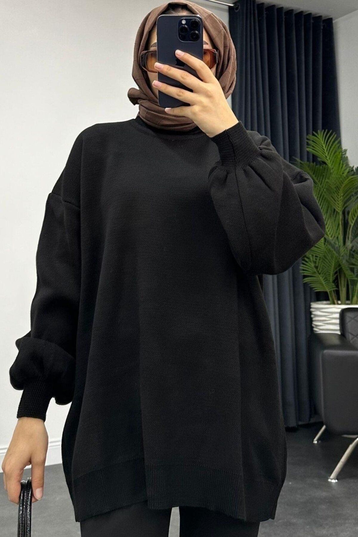 • Yumuşak ve esnek triko kumaşı, gün boyu rahat etmenizi sağlarken, yarım boğaz detayıyla serin havalarda sıcak tutar.
