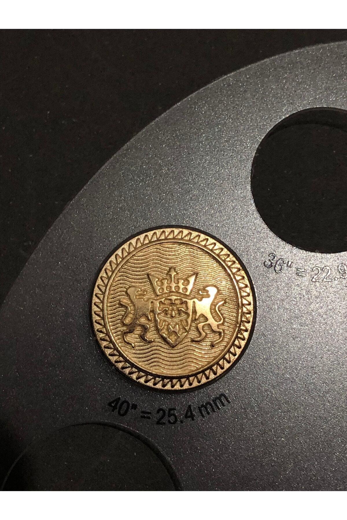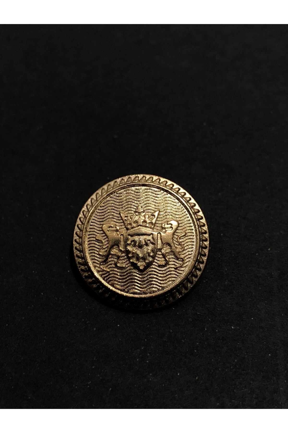 Gold sarı renkli, ikili aslan ve arma kabartılı tasarım model düğme.