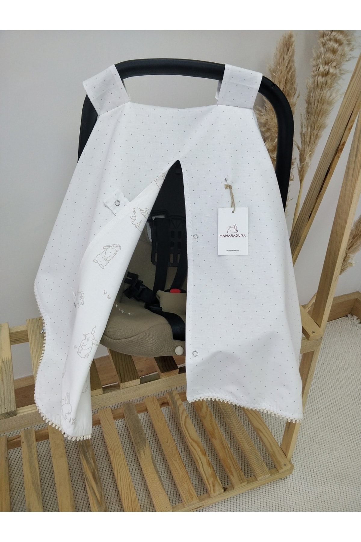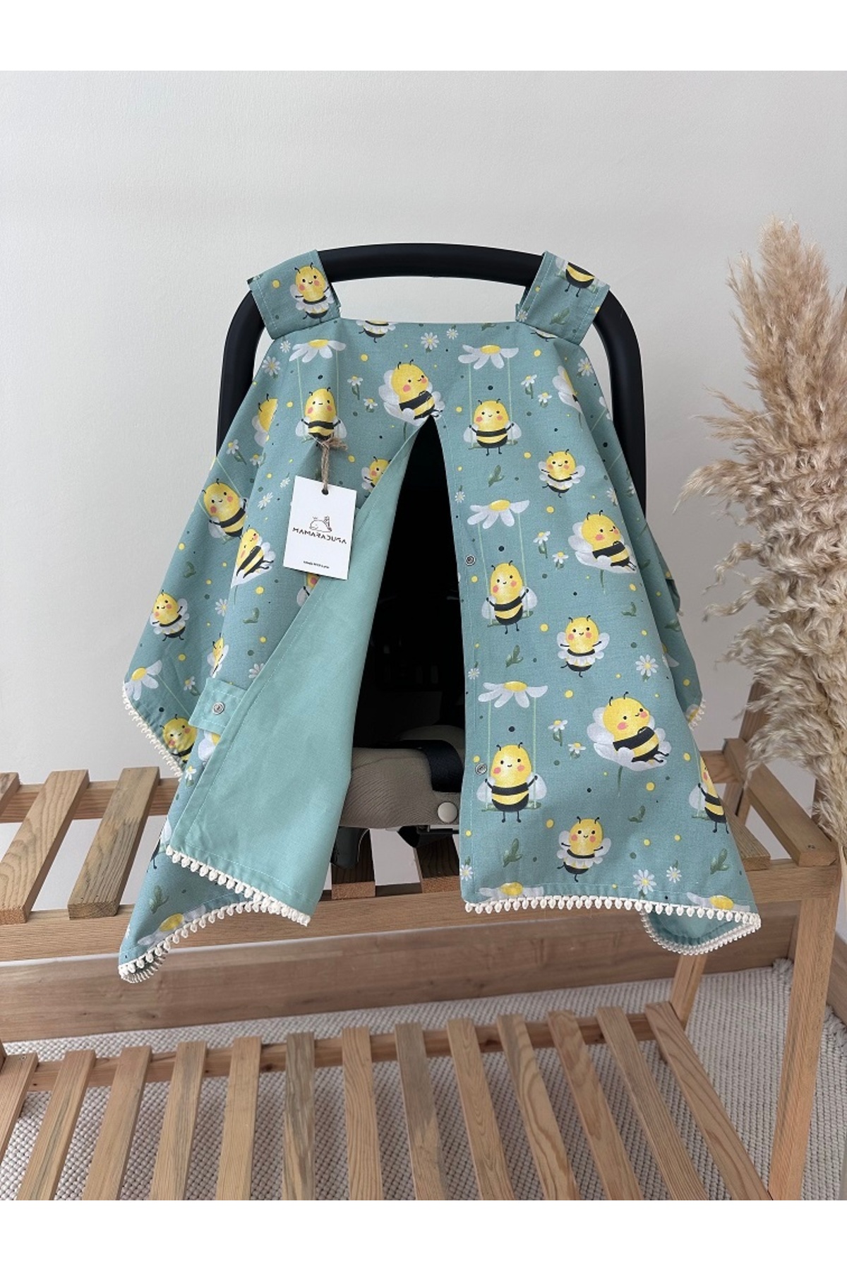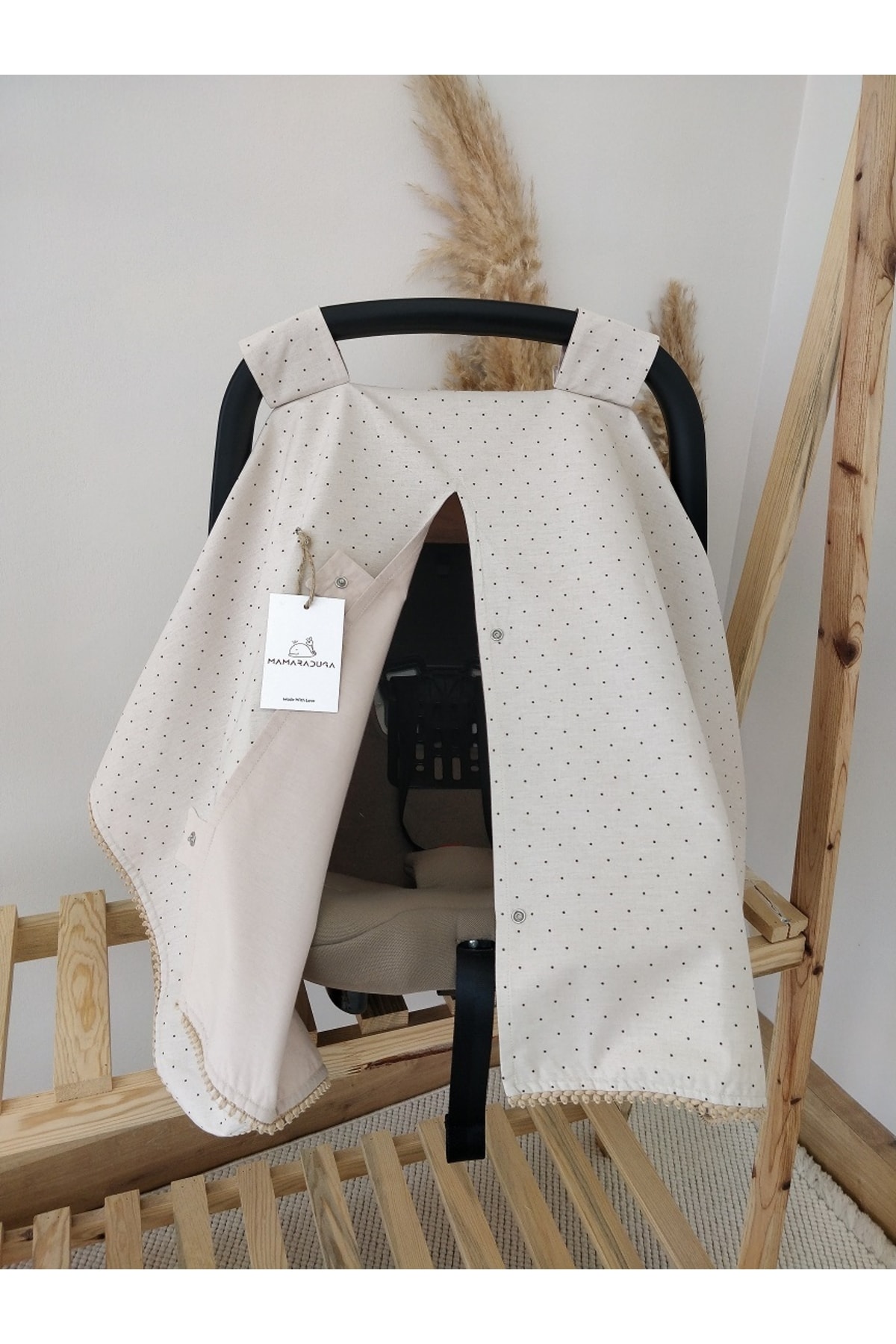 ( İki Tarafıda % 100 Organik Pamuk Poplin Kumaş, Minik Şerit Ponpon Süslemeli.