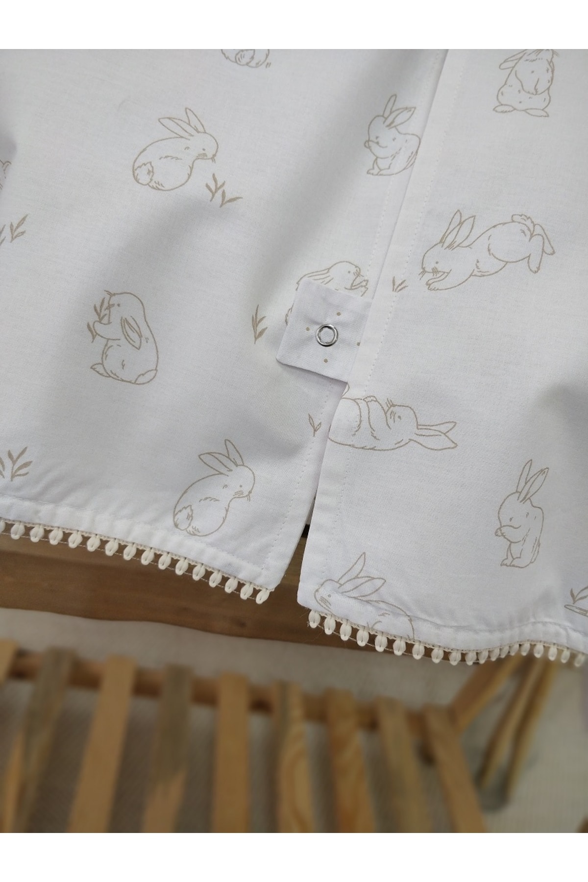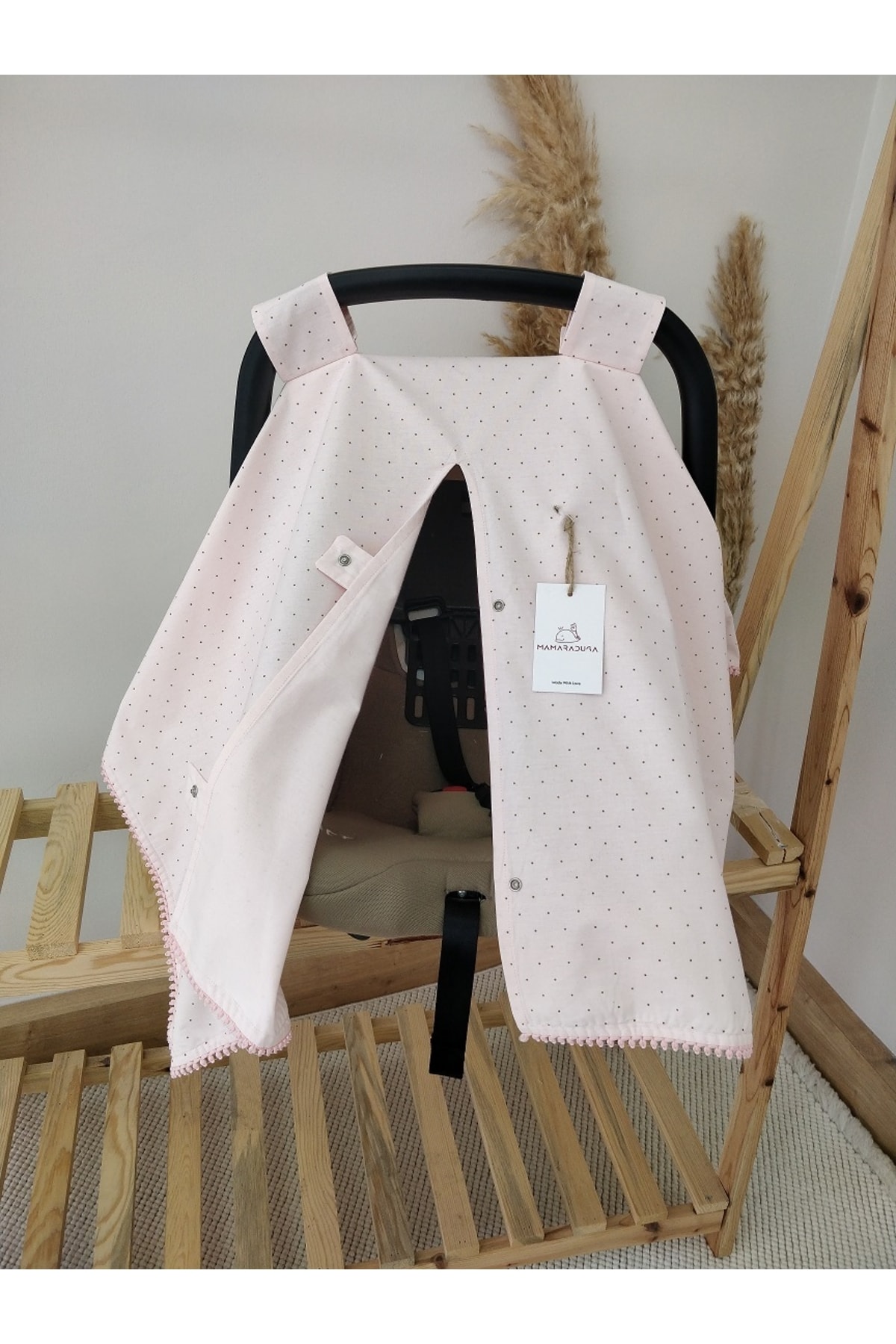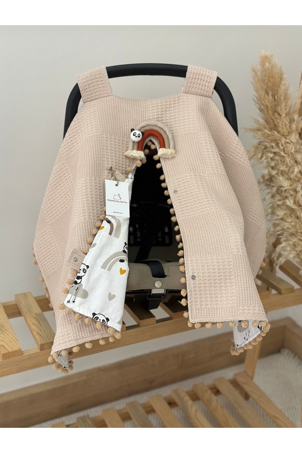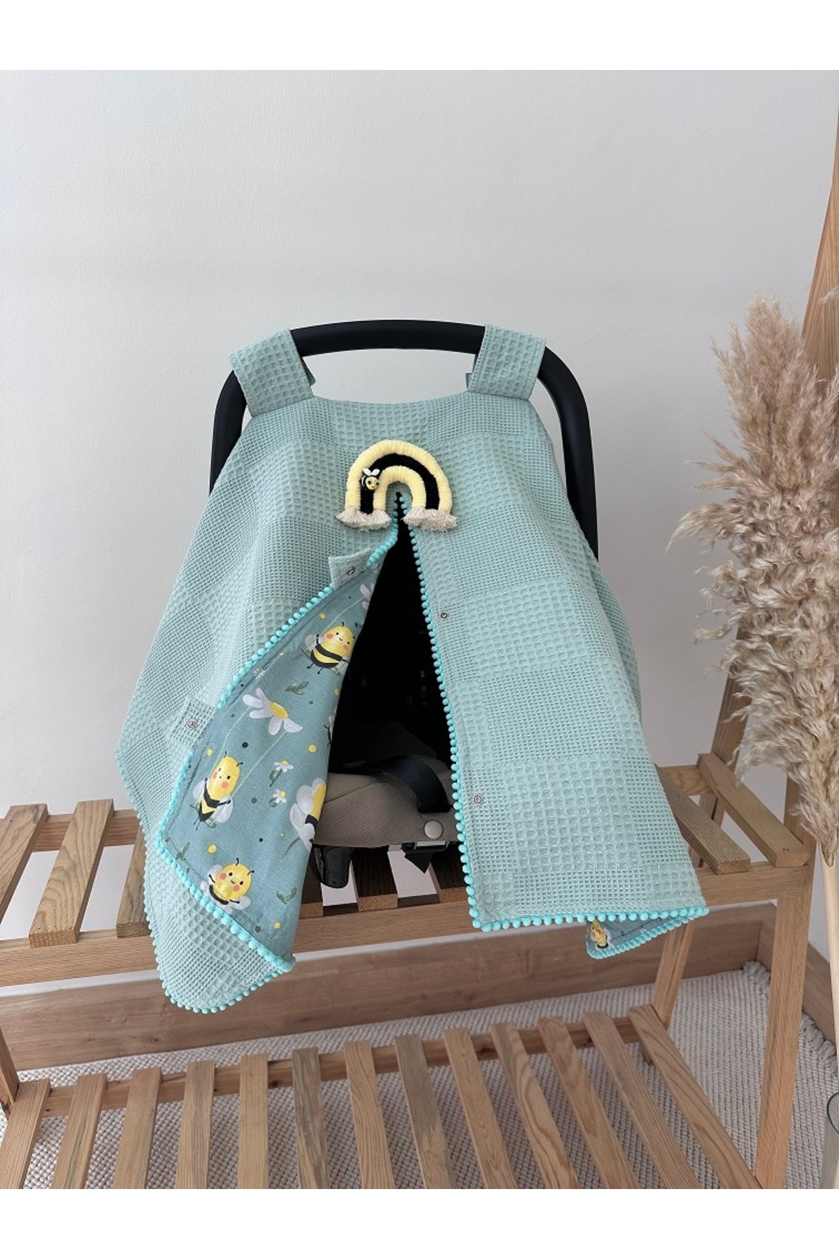 ( İki Tarafıda % 100 Organik Pamuk Poplin Kumaş, Minik Şerit Ponpon Süslemeli.
