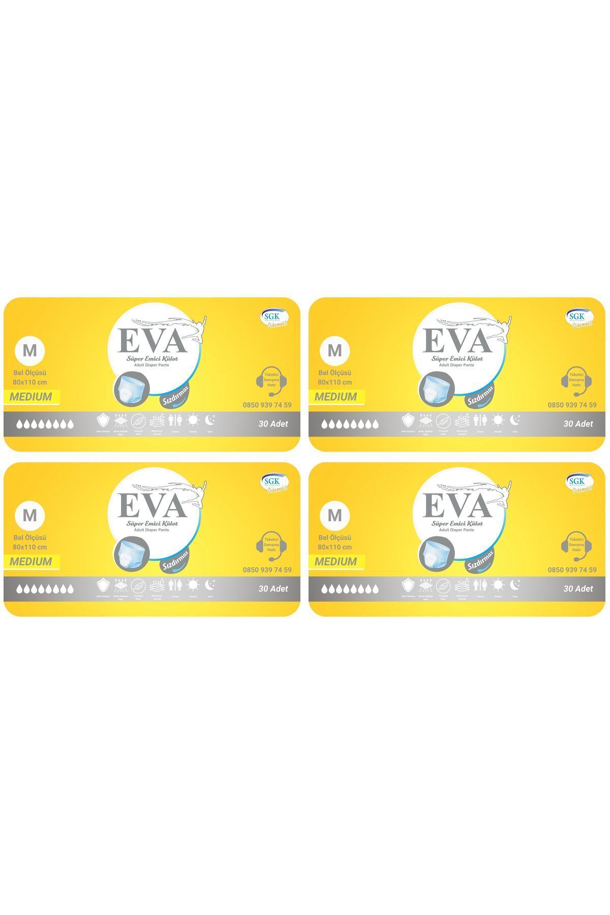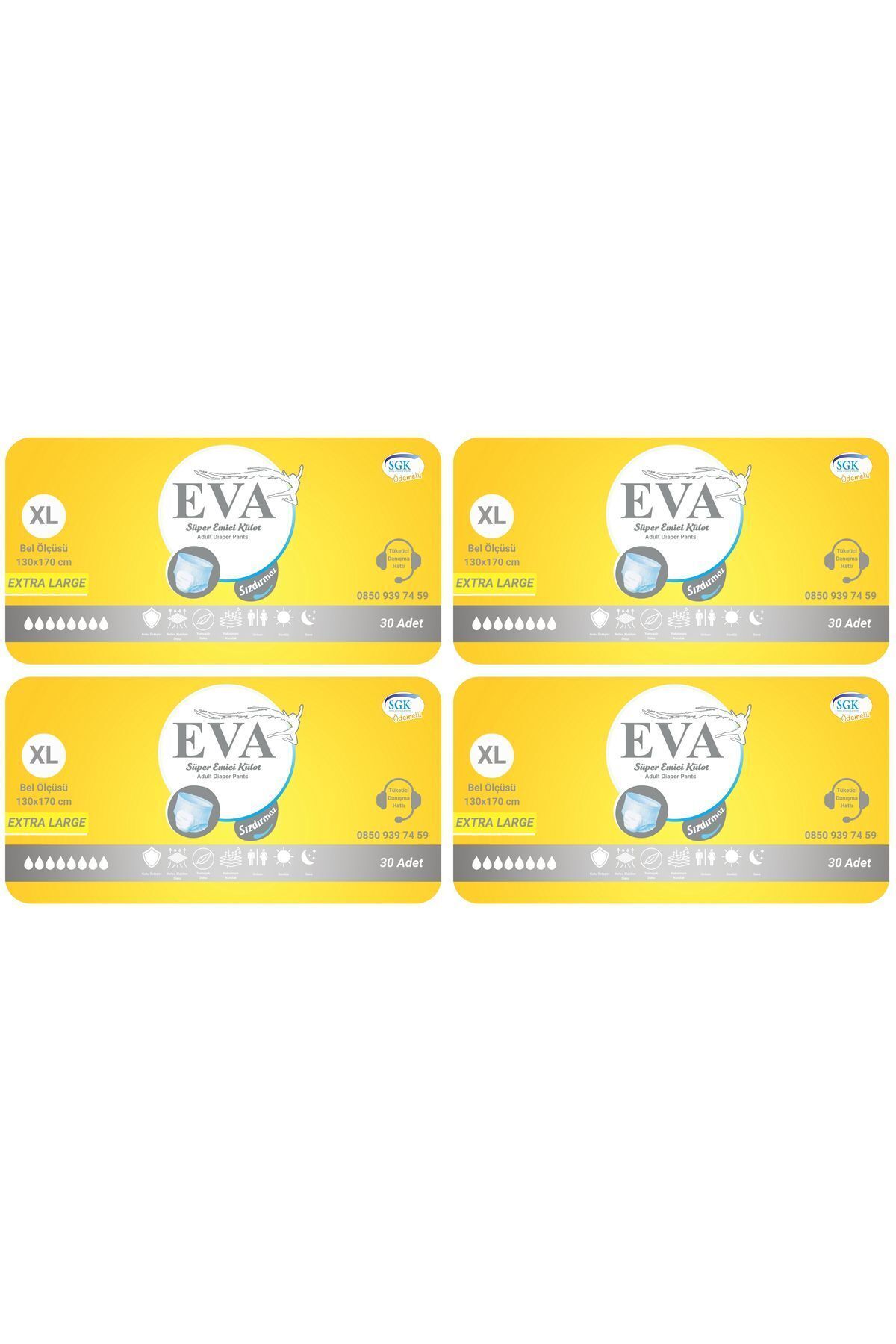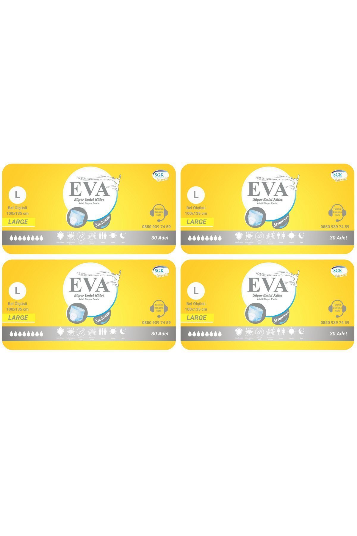 Eva Klasik Emici Külot Yetişkin Hasta Bezi 120 Adet Sıvı geçirmez bariyerler Koku önleme sistemi Vücuda uyumlu tasarım
