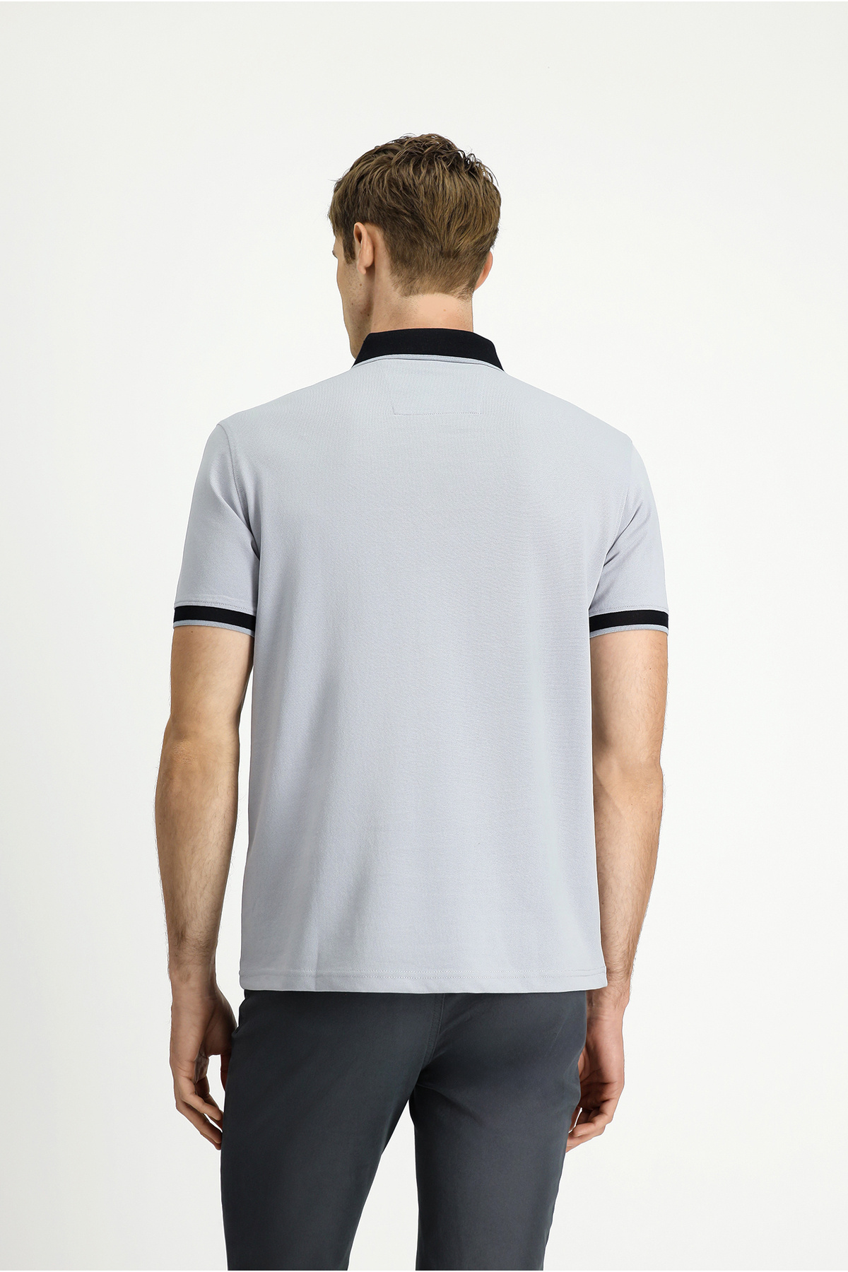 Yaka ve koldaki renk blokları, düz renkteki bu polo yaka tişörtün tasarımını alışılmışın dışına çıkarıyor.