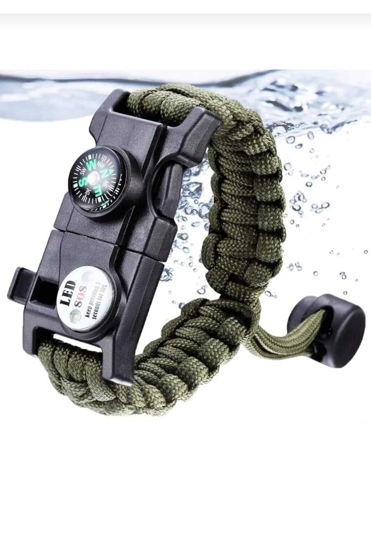 GENEL BİLGİLER Güçlü paraşüt ipinden örgü bileklik Doğal ortamda ihtiyaç duyulabilecek 20 kritik işlevde yardımcınız Acil durumlar için taktiksel hayatta kalma bilekliği SOS led lamba Magnezyum Ateşleyici Çubuk Pusula Düdük Paracord İp TEKNİK BİLGİLER Toplam İp Boyu: 3,2 metre AVANTAJLAR Doğal ortamda ihtiyaç duyulabilen barınak yapımı