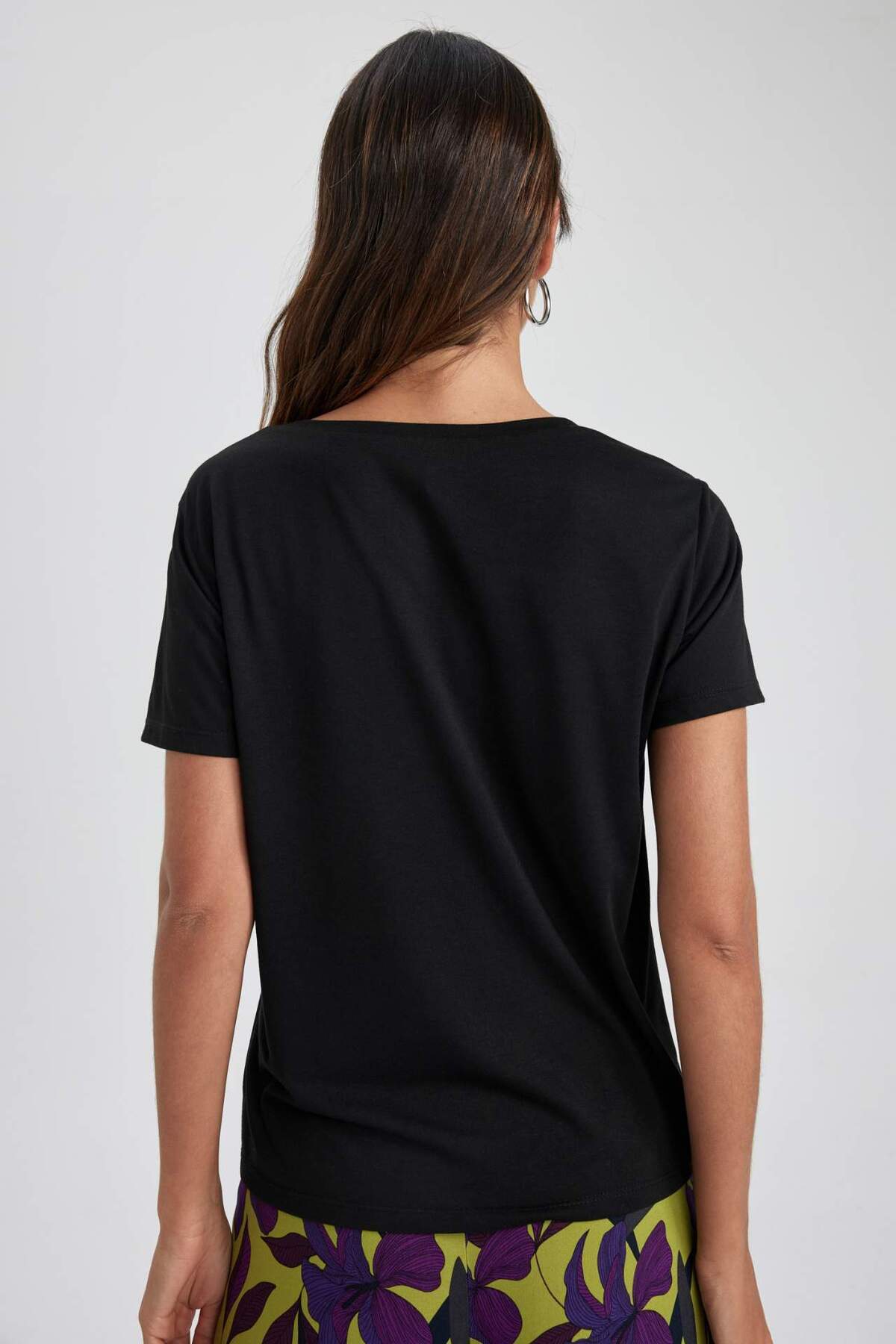 Pamuklu kumaşı, v yaka, kısa kollu tunik boylu modeli ve rahat kalıbı ile, tayt ve pantolonlarınızla kombinleyerek kolayca kullanabileceğiniz günlük giyimde rahatlığından ödün vermeyeceğiniz DeFacto Kadın Regular Fit V Yaka Kısa Kollu Tişört.