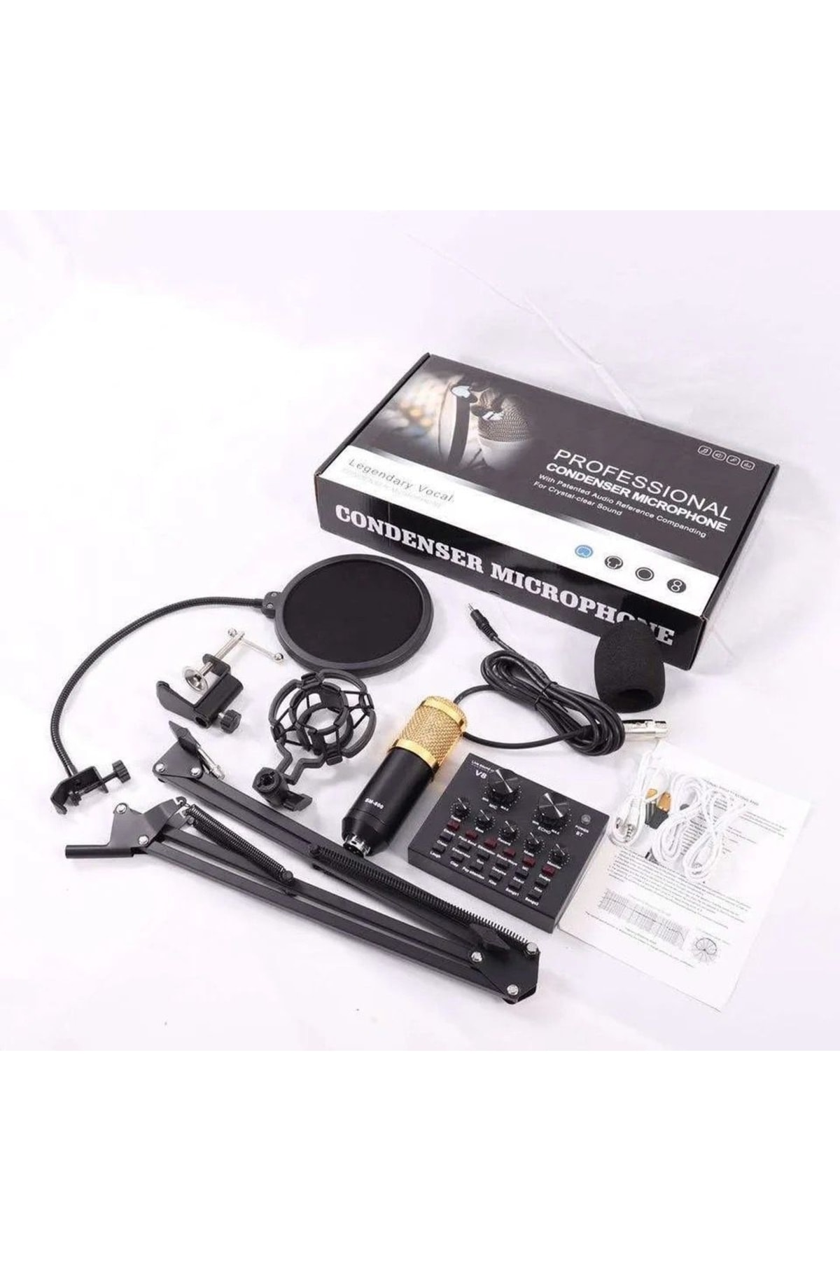 Bm800 Profesyonel Mikrofon Kitleri V8 Ses Kartı Ile Karaoke Mikrofon Standı Kondenser Usb Mikrofon