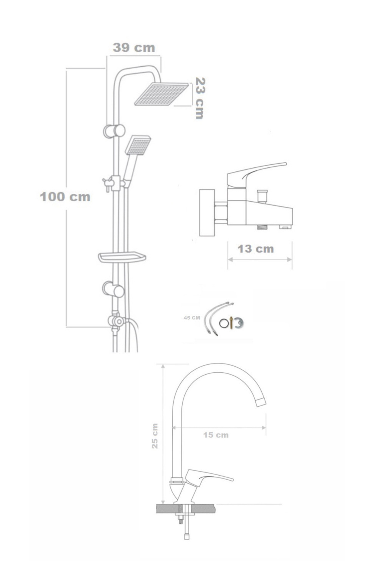 Setin içindekiler :YERLİ ÜRETİCİDEN Robot duş seti Armour marka siyah banyo bataryası Armour marka siyah lavabo bataryası.