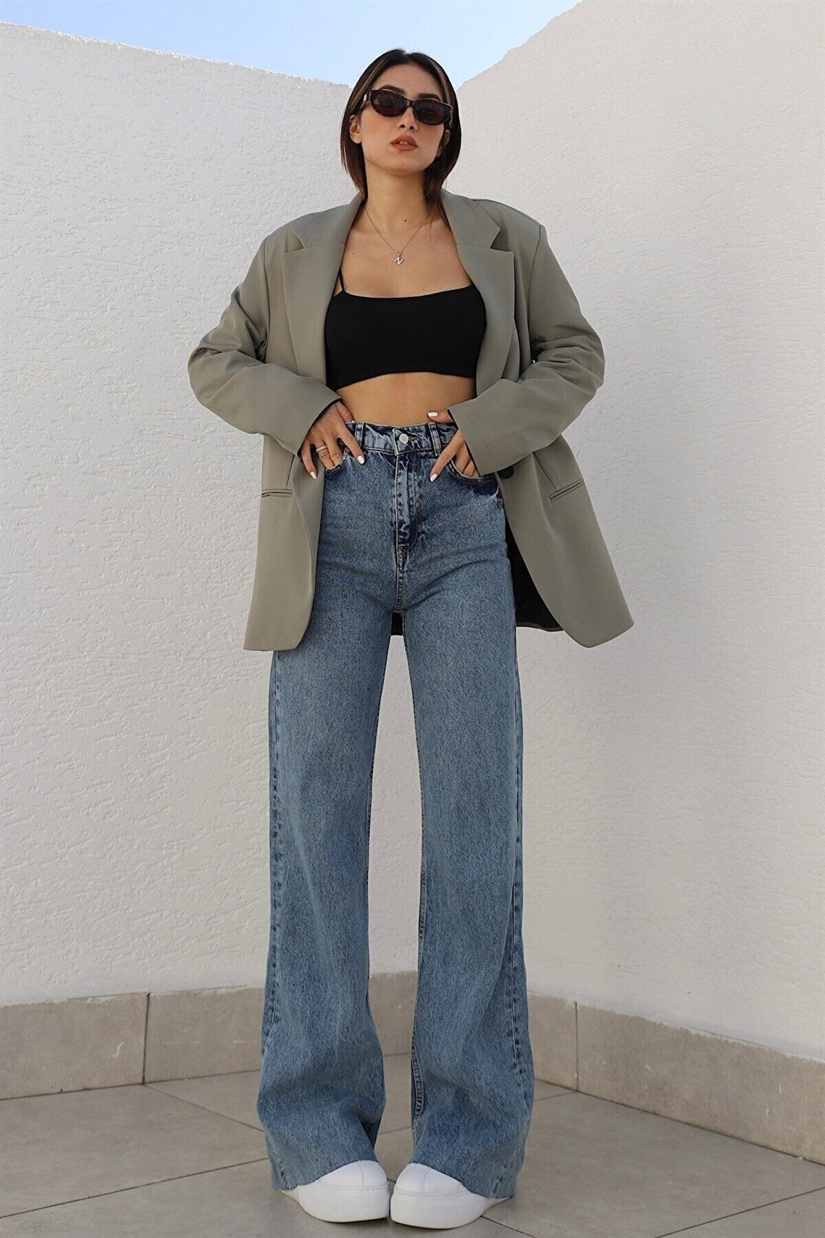 Kadın Koyu Mavi Bol Paça Jeans Kadın Pantolon, Salaş Kadın Koyu Mavi Palazzo Jeans Kadın Salaş Pantolon Palazzo Jean Manken Boyu:168 cm Manken Kilo:58 Manken Üzerindeki Beden:28 Ürün boyu:107cm Ara bacak boyu:73 cm Fermuarlı Likralı Süper Yüksek Bel Kumaş Kalınlığı:Orta Denim Kumaş Power Likra Kat İzi renk Solması Kesinlikle Yapmaz Esnek Bel Oversize %97 Pamuk %3 Elestan Her mevsim kullanılabilir Yıkamadan sonra çekme yada solma olmaz Paça Tipi: Bol Paça Süper Yüksek Bel Salaş Kadın Jeans Pantolon Mavi Süper Yüksek Salaş Likralı jean pantolon Extra yüksek bel Salaş paça Wide Leg
