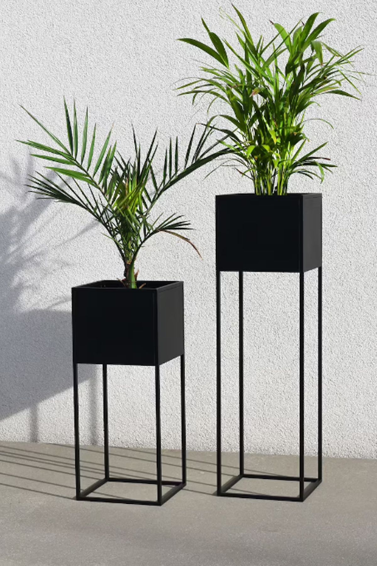 Modern Tasarımlı Siyah Metal Saksılık - Şık ve Dayanıklı Bitki Standı Ev dekorasyonuna zarafet ve modernlik katmak isteyenler için özel olarak tasarlanmış bu siyah metal saksılık, sade ama etkileyici çizgileriyle yaşam alanlarınıza estetik bir dokunuş sunar.