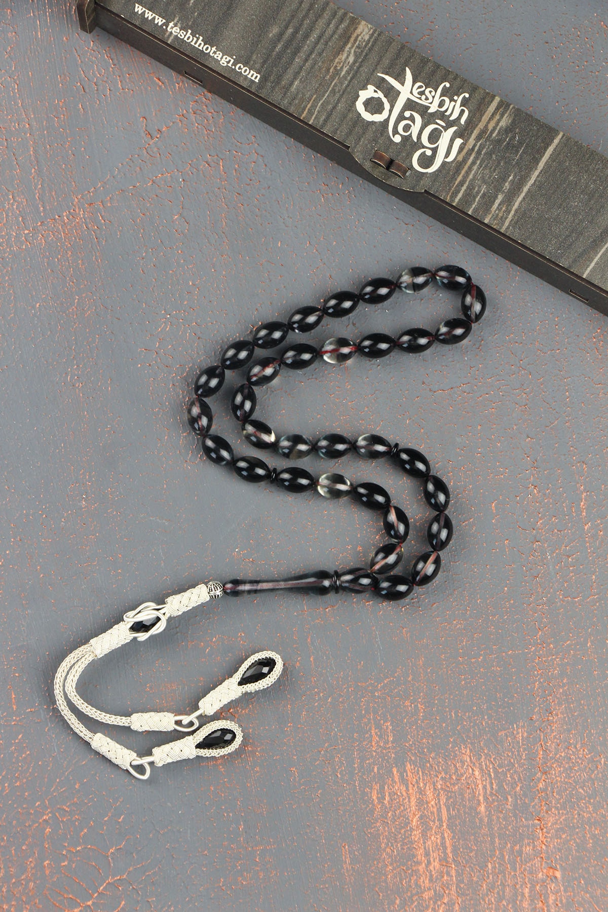 Tesbihin her bir taşı özenle seçilmiş olup, her bir püskülün el işçiliği ile tamamlanmıştır