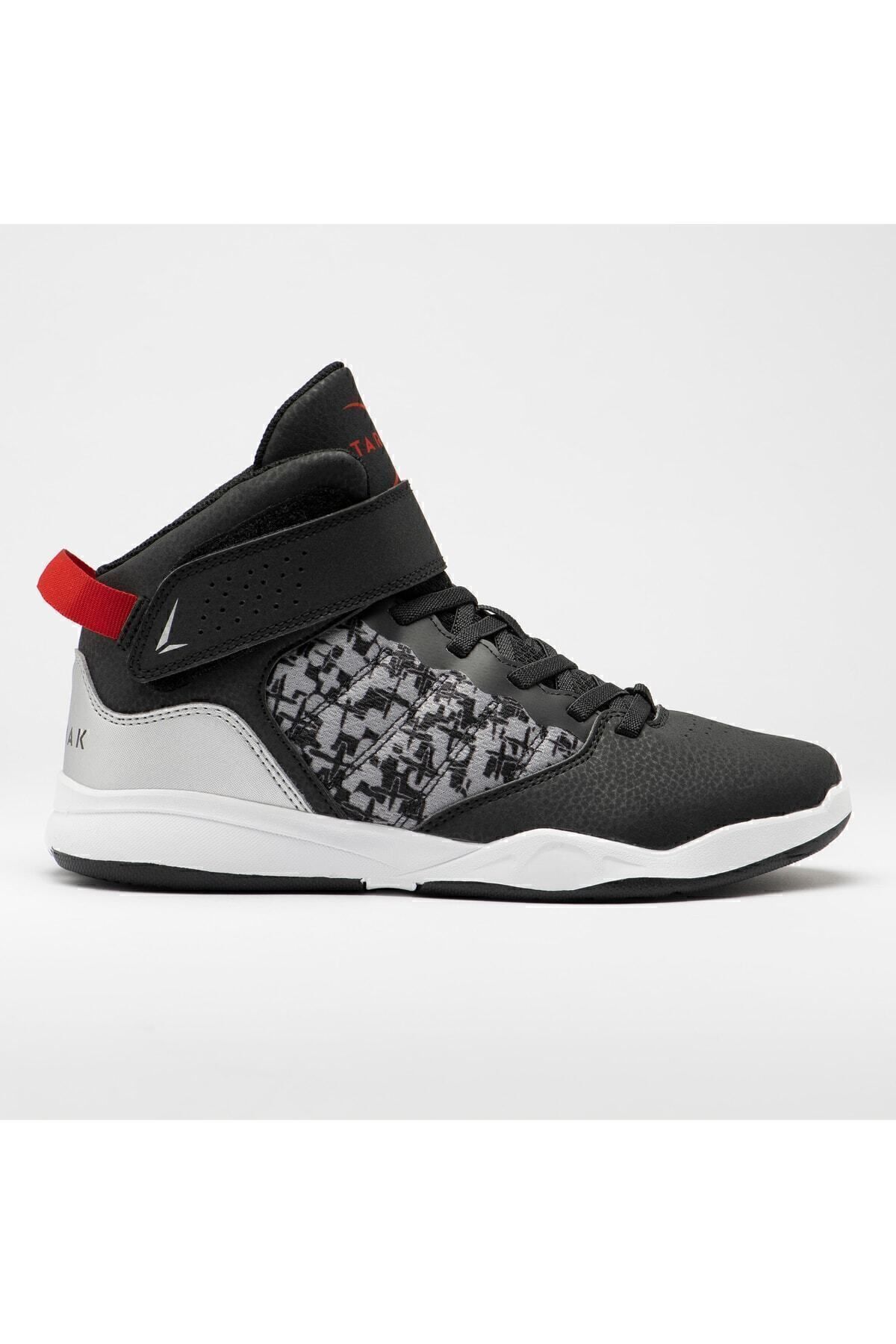 RENK: Siyah ÜRÜN FAYDALARI Giyme / çıkarma kolaylığı: Bağlama gerektirmez! Çocuğunuz kolayca ve hızlı bir şekilde giyebilir! Destek: Cırt cırda sahip yüksek gövdesi ile kavrama sağlar. Darbe emme: Darbe emicilik sağlayan EVA köpük enjekteli topuk Eko-Tasarım: Geri dönüştürülmüş bileşenler kullanarak ürünün çevresel etkisini azaltıyoruz. ÜRÜN KONSEPTİ VE TEKNOLOJİSİ ÜRÜN BİLEŞİMİ: Üstü 95% Poliüretan, 5% Polietilen Tereftalat Astar ve çorabı 100% Polietilen Tereftalat Dış tabanı 100% Kauçuk - Sentetik SAKLAMA TAVSİYESİ: Bu ürünü kuru bir yerde saklamanızı öneriyoruz. Kullandıktan sonra spor çantanızdan çıkarın. KULLANICI TALİMATLARI: Ayakkabılarınızı makinede yıkamayın. BAKIM TAVSİYESİ: Elde yıkayın. TEKNİK BİLGİLER Çocuğunuz için bu basketbol ayakkabısını neden seçmelisiniz? : Bağcığı bulunmamaktadır! Çocuklar ayakkabılarını tek başlarına giyebilir ve çıkarabilir. Cırt cırt bantları sayesinde kolay giyilip çıkarılır.Hemen basketbol oynamaya gidebilirler! Artık bağcıkları bağlamak için antrenmanı ya da maçı yarıda kesmek, düşmekten korkmak geride kaldı! Cırt cırt bantlara ve elastiklere sahip olan bu ayakkabı küçük şampiyonlarınızın ayaklarını mükemmel şekilde kavrar!