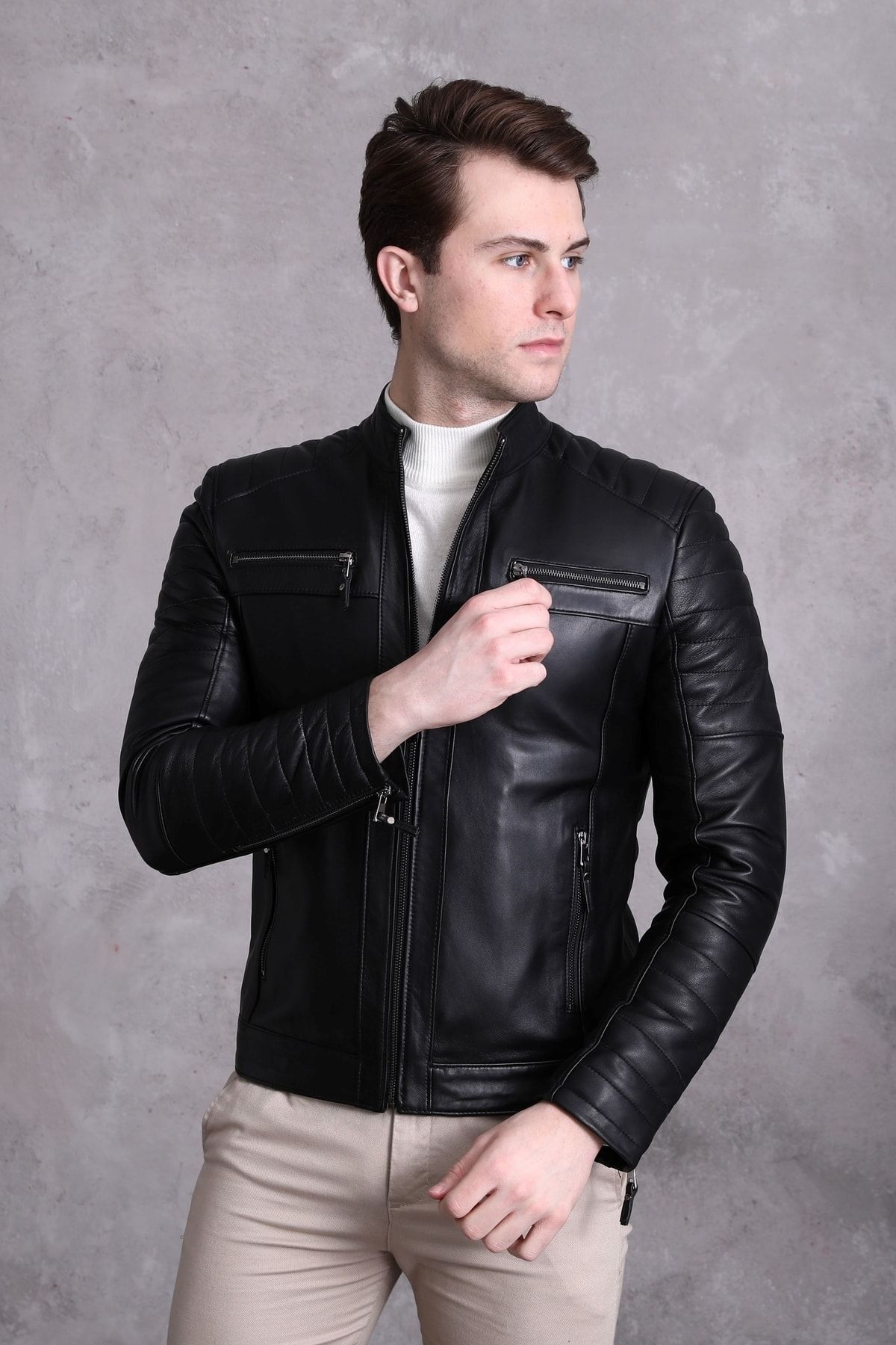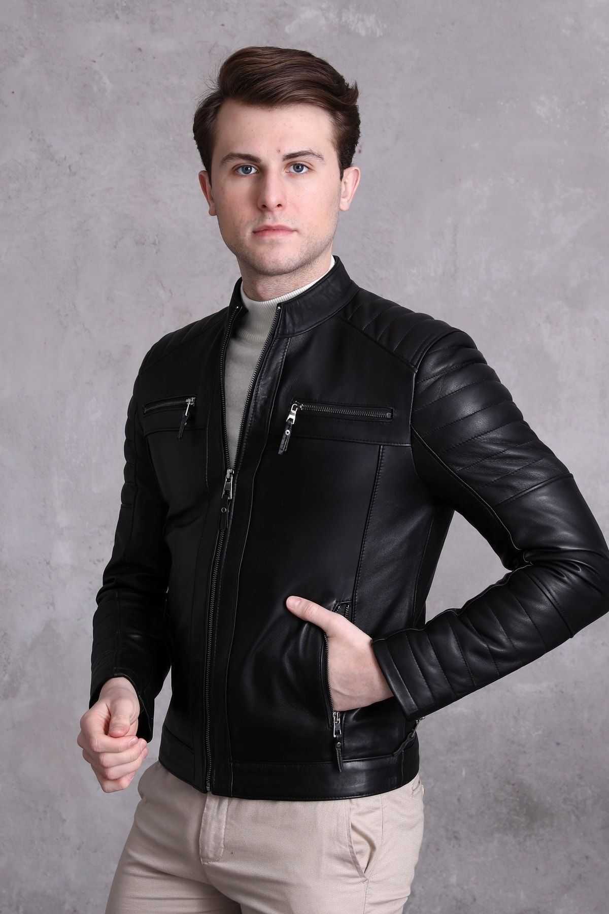 -Manken üzerindeki: M BEDEN' dir , Kalıp olarak: Slim fit kesimdir, Hakiki kuzu derisinden üretilmiştir, Kol bilek kısımları ayarlanabilir fermuarlıdır.