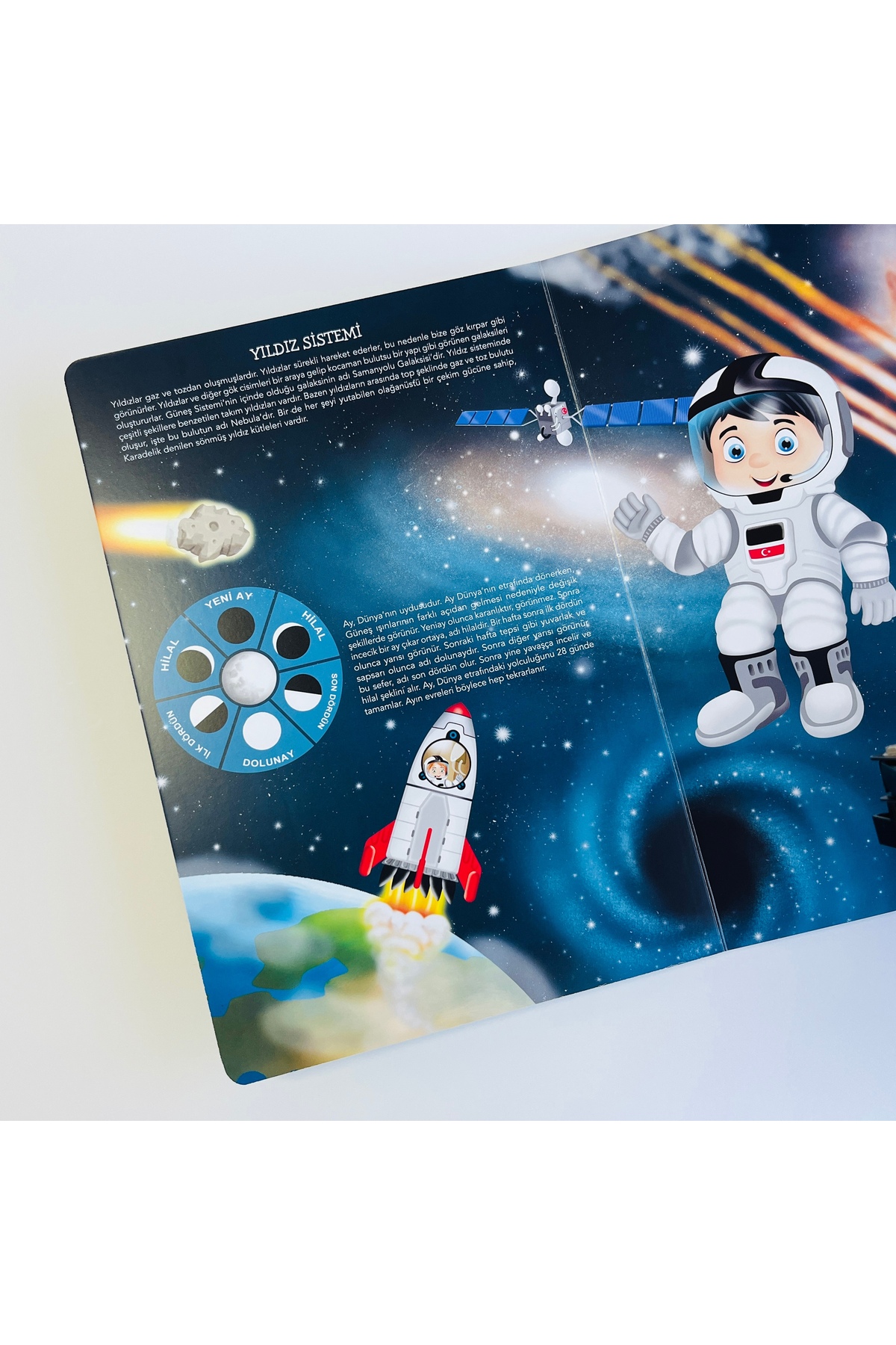 Uzayla ilgili bilgileri yaşam alanlarında canlı ve renkli görsellerle anlatan resimli çocuk ansiklopedisi sayesinde çocuklar kitabı kendi başına inceleyebilir resimlerle hikâye oluşturabilir sözlük bölümündeki İngilizce destekli gerçek görseller sayesinde gerçek hayat ve yaşam alanları arasında bağ kurabilirler