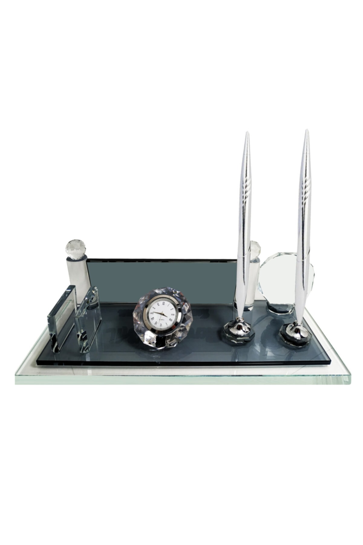 İki adet Soketli Tükenmez Kalem + saat + kartvizitlik ve İsimlik alanı mevcuttur.