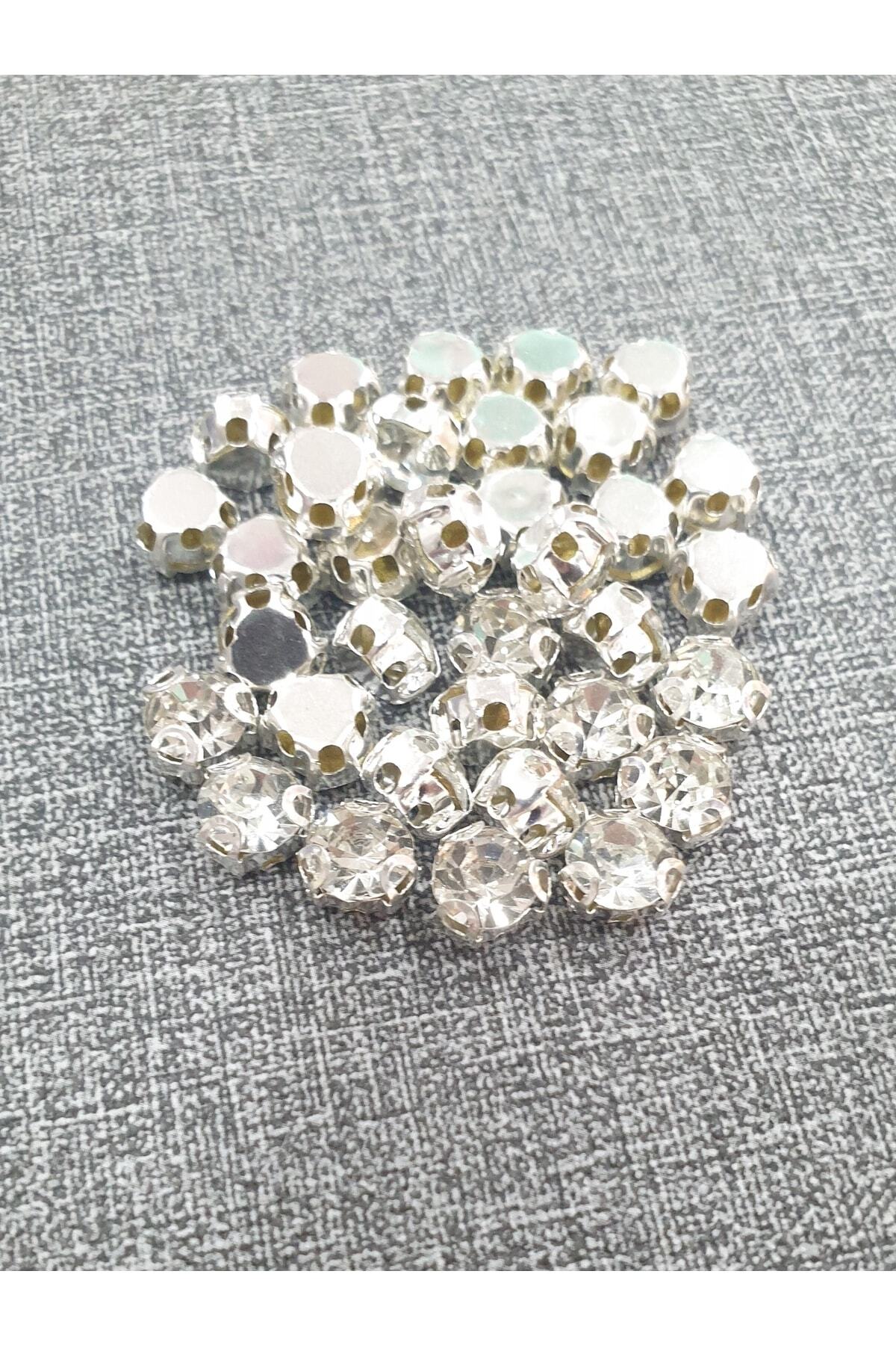• DİKMEYE UYGUN GÜMÜŞ RENK DELİKLİ KASA KRİSTAL TAŞ