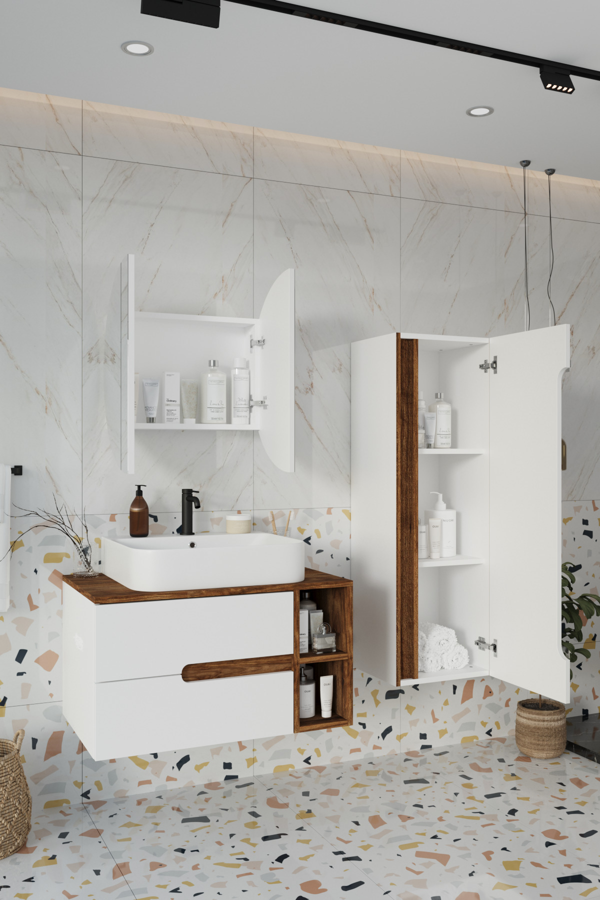 • 80 cm banyo dolabı ayaksız şekilde kullanılır.