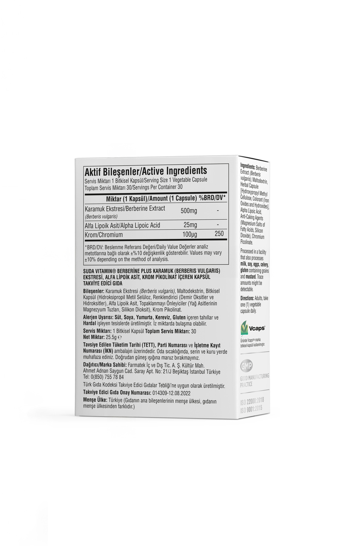 Suda Berberine + Plus, kan şekeri dengesi ve metabolik sağlık desteği arayanlar için özel olarak formüle edildi.