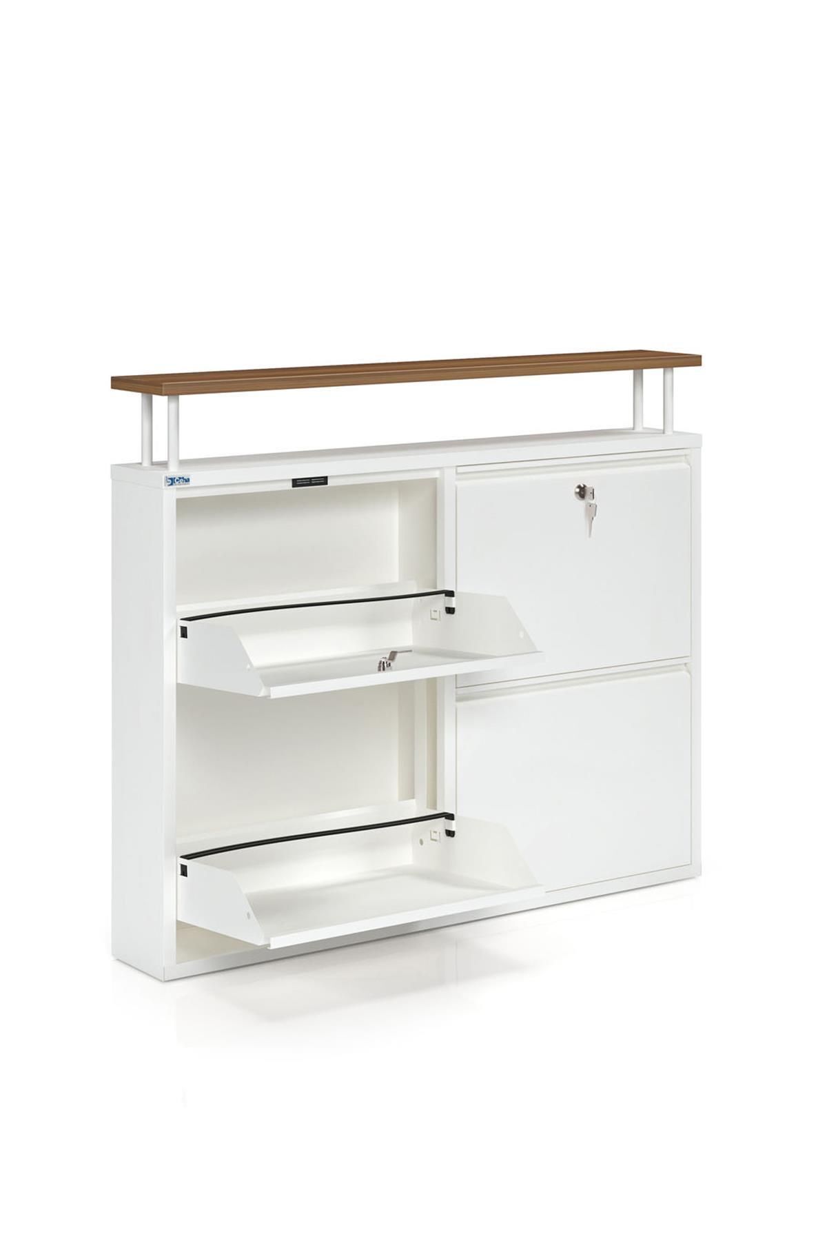 Kilitli Tablalı 4'lü Metal Ayakkabılık - Beyaz