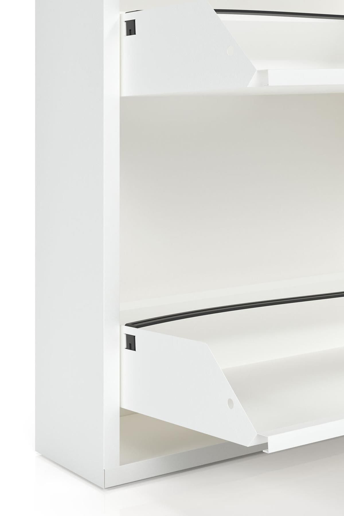 Kilitli Tablalı 4'lü Metal Ayakkabılık - Beyaz