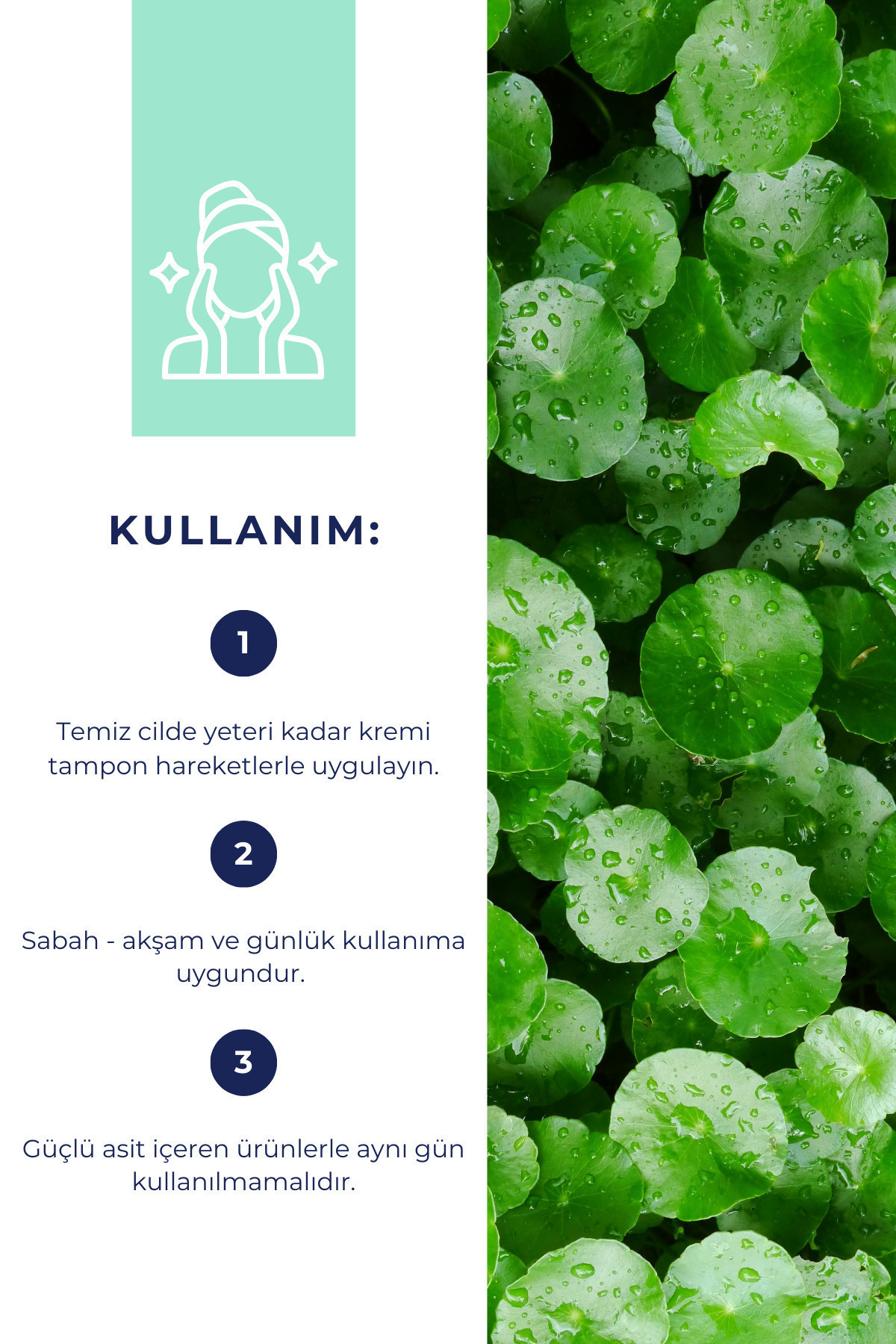 Cilt bariyerini desteklemeye yardımcı olan ve yoğun nemlendirme sağlayan "Centella Asiatica" ile formüle edilmiştir