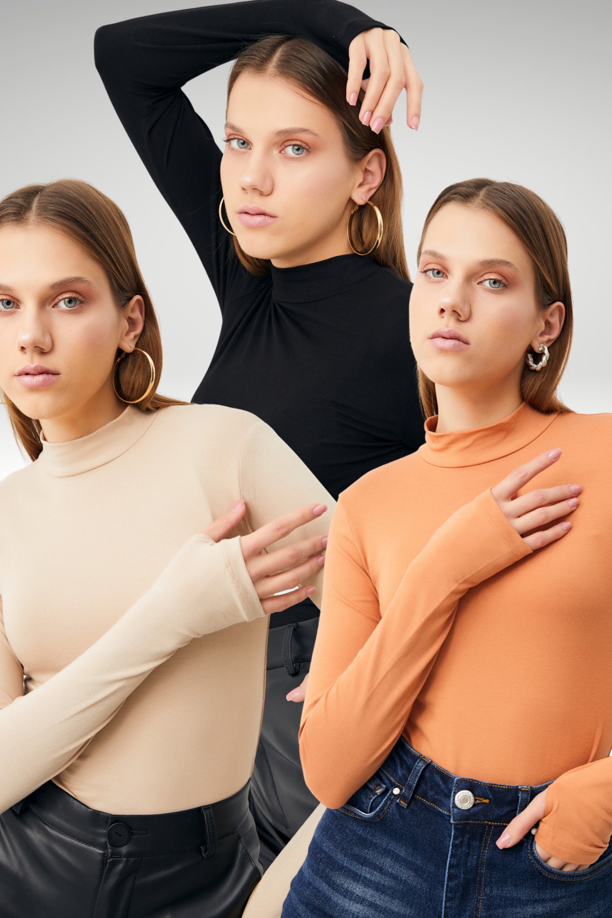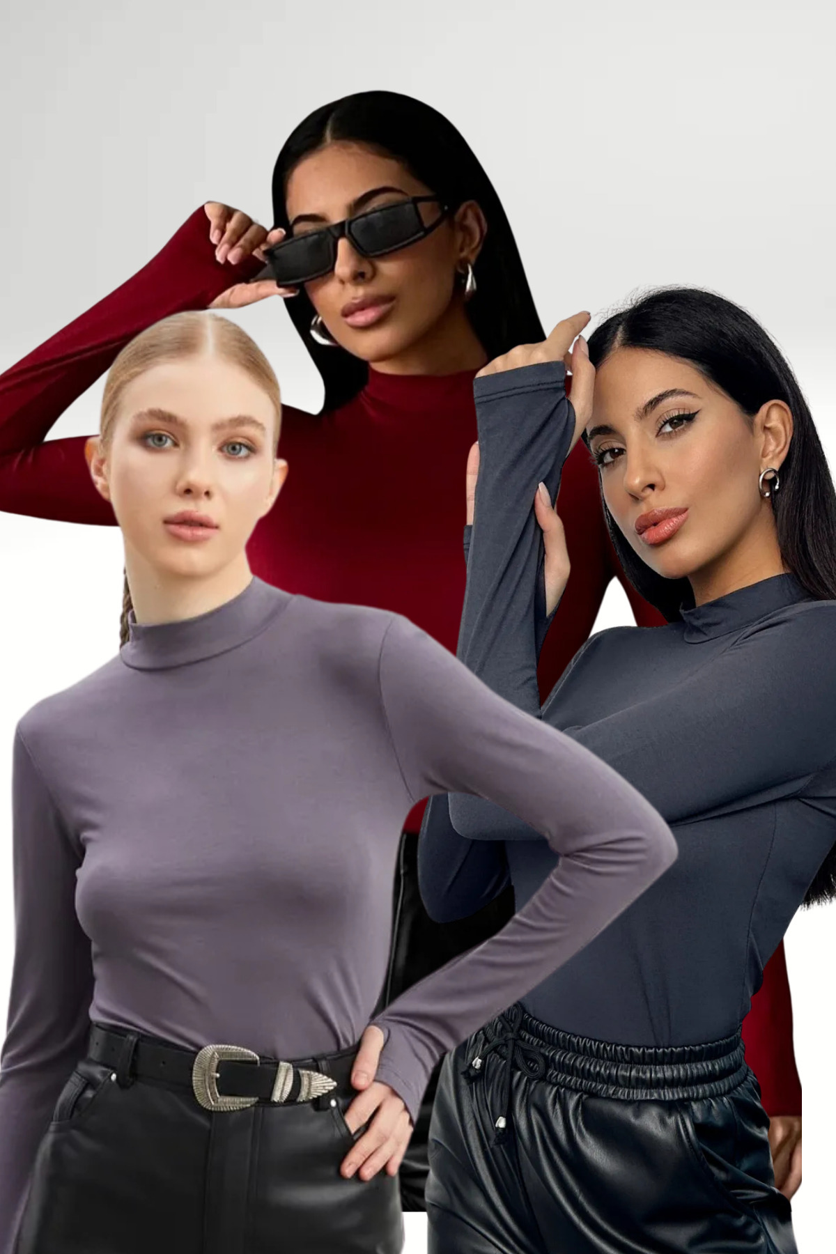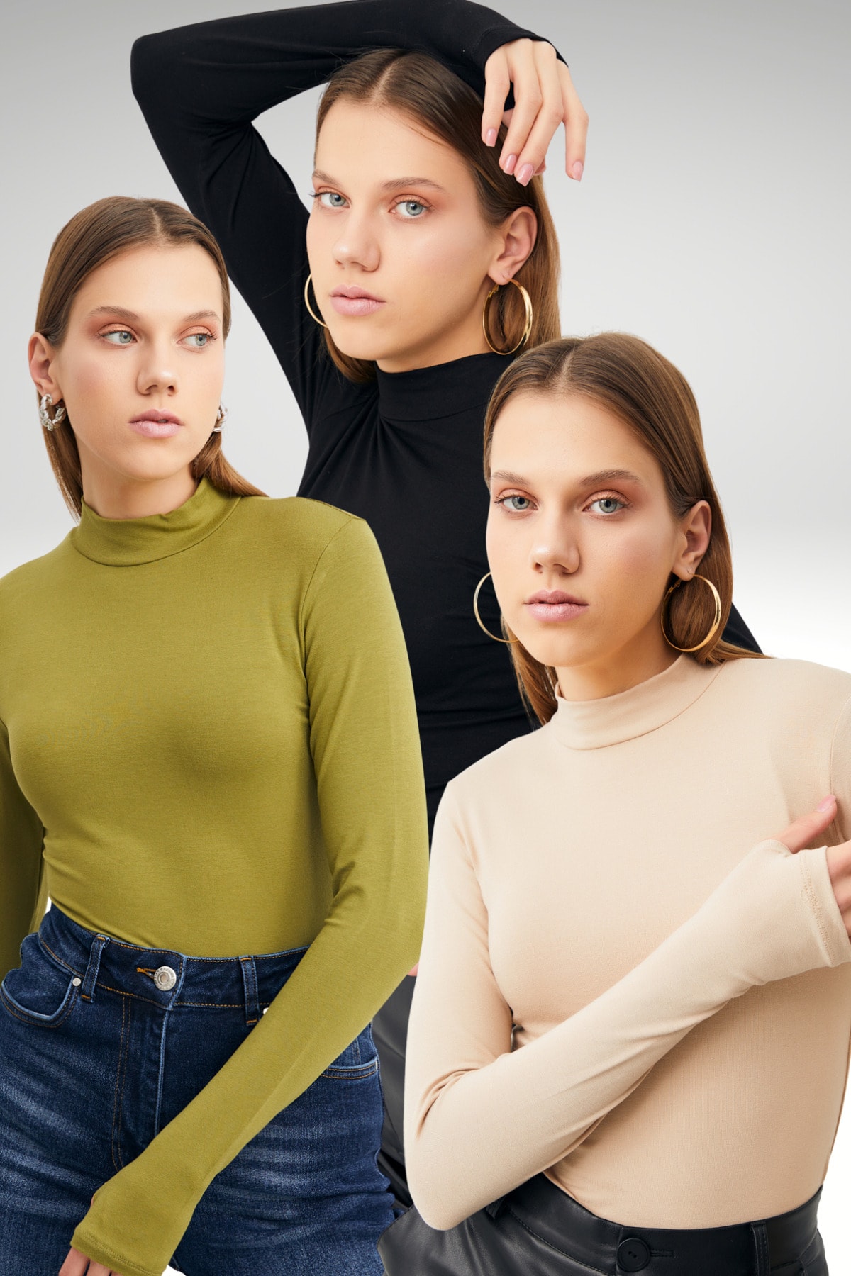Yarı balıkçı yaka tasarımı ile hem şıklığı hem de rahatlığı bir arada sunar
